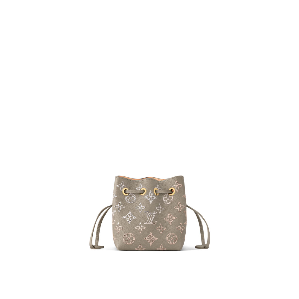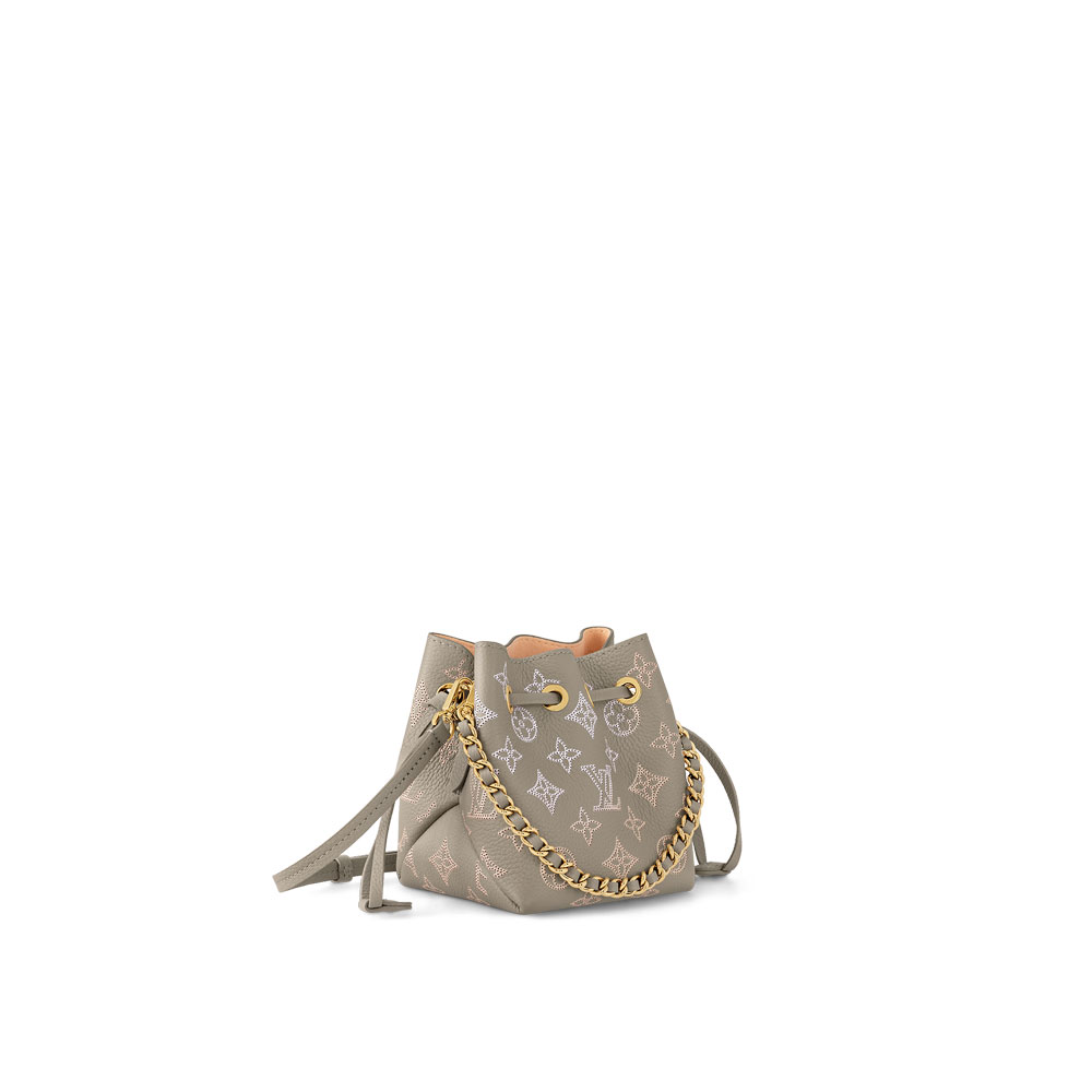 The adorable Pico Bella bucket bag is fashioned from the Houses emblematic Mahina calfskin, with Monogram Flowers and LVs delicately perforated into the leather. The understated colorway and pale-gold-color hardware bring a tastefully luxurious feel. The leather drawstring ensures that belongings stay secure.