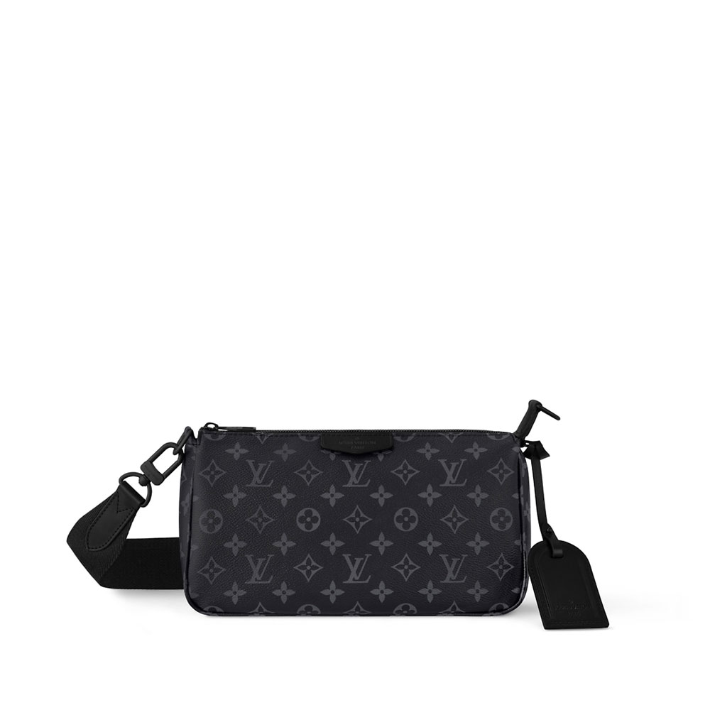The Pochette Accessoire XL bag in Monogram Eclipse coated canvas offers a roomy zipped main compartment with an inside pocket to organise belongings. This masculine reinterpretation of a 90s House icon features details such as a name tag, removable textile strap and black-coloured metallic pieces. The strap adjusts for shoulder or cross-body wear.