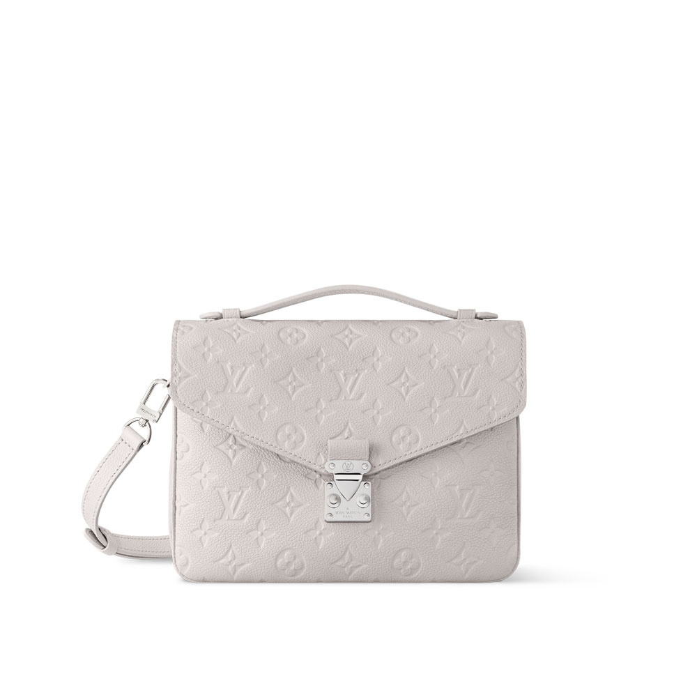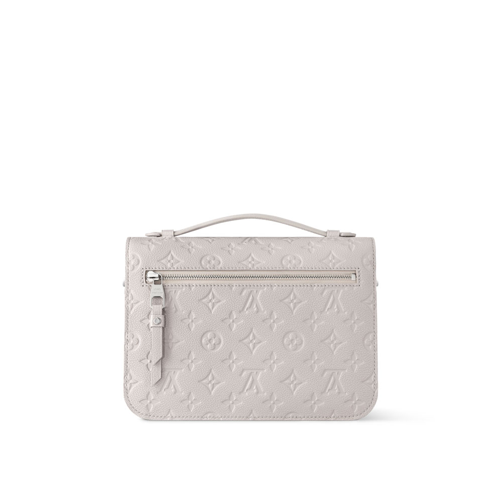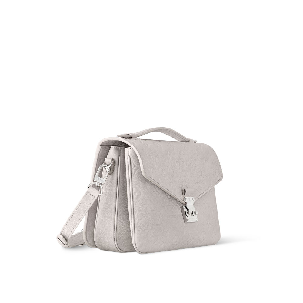 The Louis Vuitton Pochette Metis in Grey Monogram Empreinte leather is a versatile accessory that complements both casual and sophisticated ensembles. Pair it with a tailored blazer, slim-fit trousers, and ankle boots for polished daytime elegance. Transition to evening by styling it with a sleek silk slip dress and metallic sandals, letting the bag's silver hardware accentuate your look.