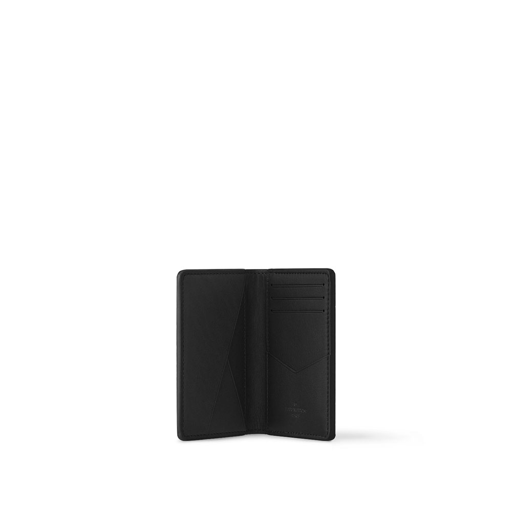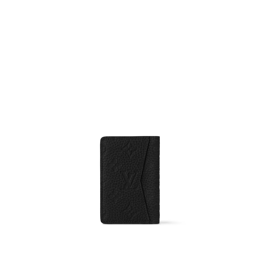 The Pocket Organizer is a small wallet whose compact dimensions belie its interior capacity. Made from Taurillon leather, its embossed with Louis Vuittons classic Monogram pattern. Inside, numerous pockets and credit-card slots make it an eminently practical wallet.