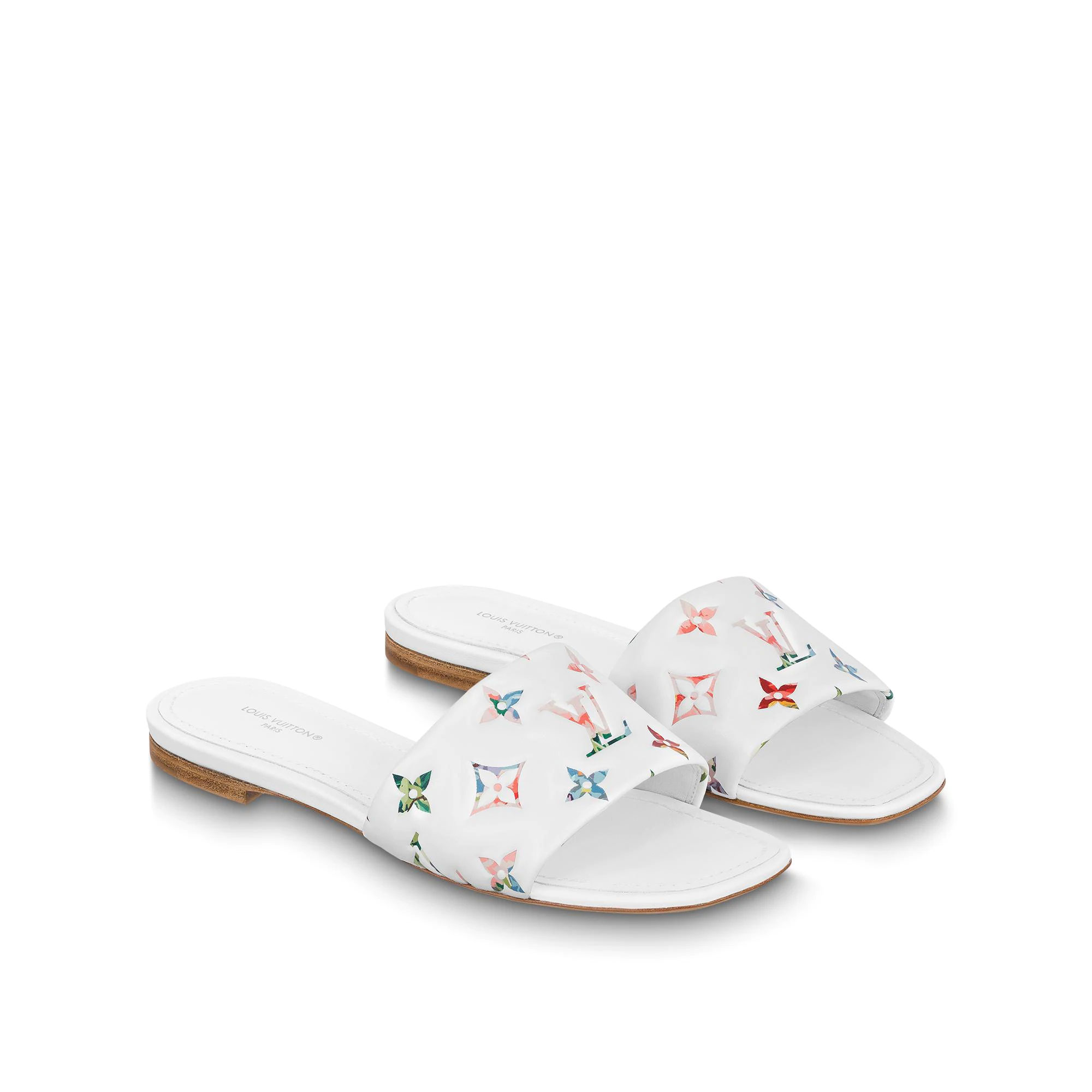 The Revival flat mule takes on a fresh. feminine look thanks to its wide front strap in soft lamb leather. which is embossed with a floral version of Louis Vuitton's iconic Monogram pattern. This model. which is notable for its on-trend square toe. is particularly comfortable owing to its padded strap and insole.