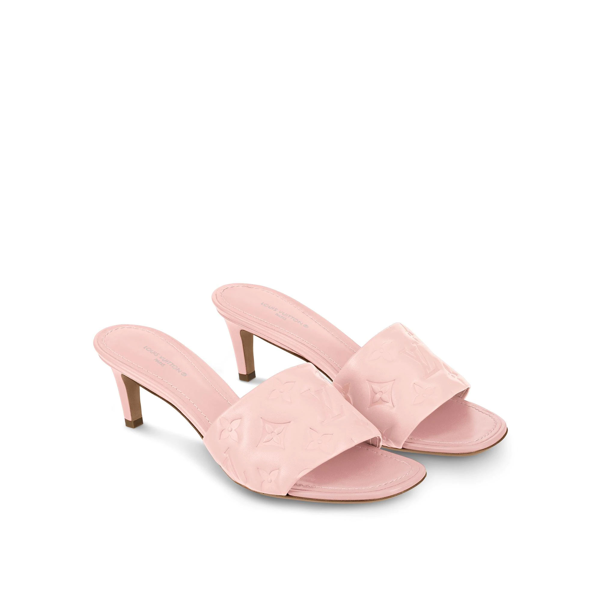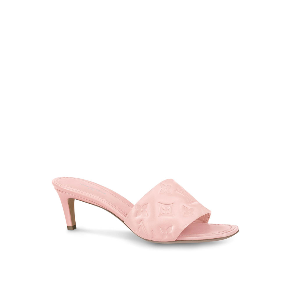 The Revival mule is a feminine style distinguished by its low kitten heel and on-trend square toe. This version comes in extremely soft lamb leather embossed with Louis Vuitton's signature Monogram pattern. This model's padded front strap and insole provide added comfort.