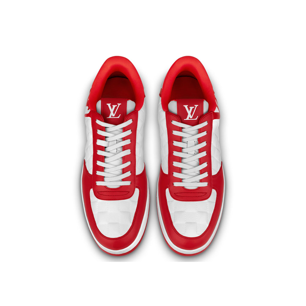 The emblematic Rivoli sneaker is reinterpreted in supple calf leather embossed with Louis Vuitton's historic Damier pattern. The graphic. bicolor design is complemented by a dynamic. oversized LV Initials signature on the side. A bicolor rubber outsole completes this model. which features a shape-memory anatomic insole for added comfort.