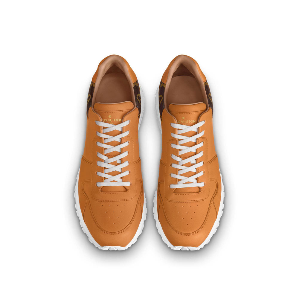 This refined interpretation of Louis Vuitton's iconic Run Away sneaker is crafted from supple tan calf leather with Monogram-canvas trim. The design is complemented by white laces and a white technical rubber outsole. The Louis Vuitton signature is embossed in gold on the tongue.
