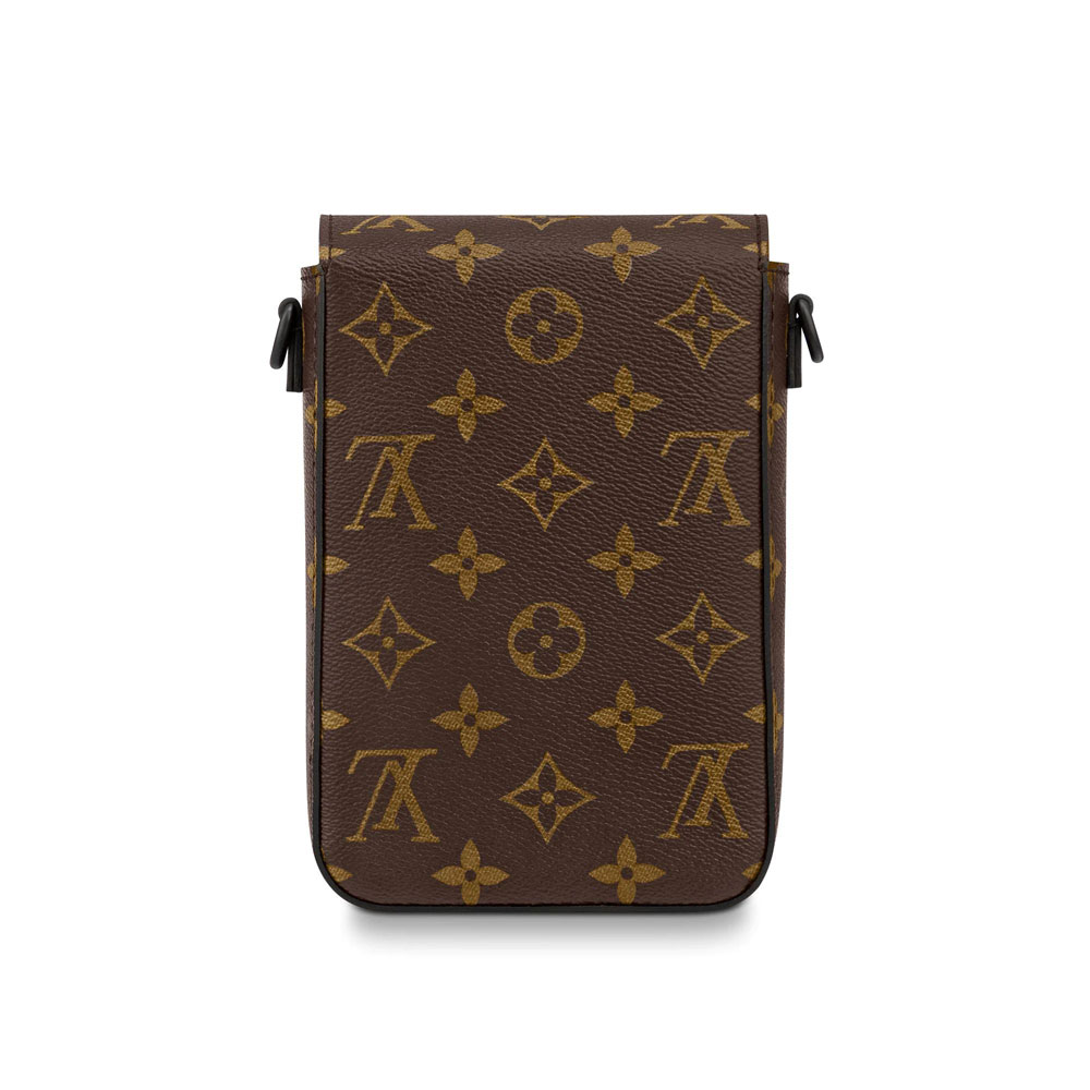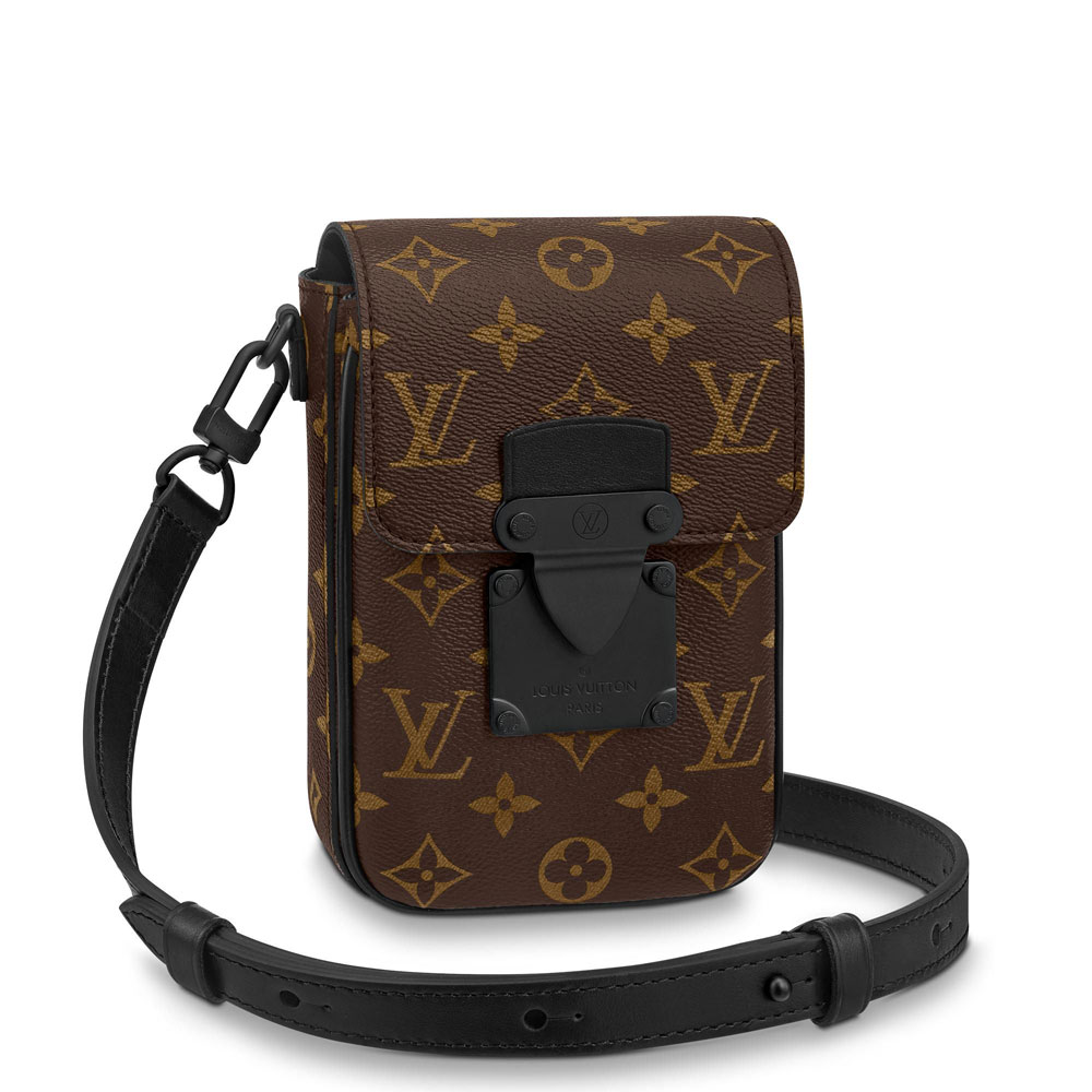 Styled in Louis Vuitton's signature Monogram Macassar canvas. the S-Lock Vertical wearable wallet is the new on-trend way to carry everyday essentials. A magnetic closure inspired by the House's historic trunk locks keeps personal items secure but easy to access. Highly functional. it features an adjustable strap for comfortable cross-body wear plus a special smartphone compartment.