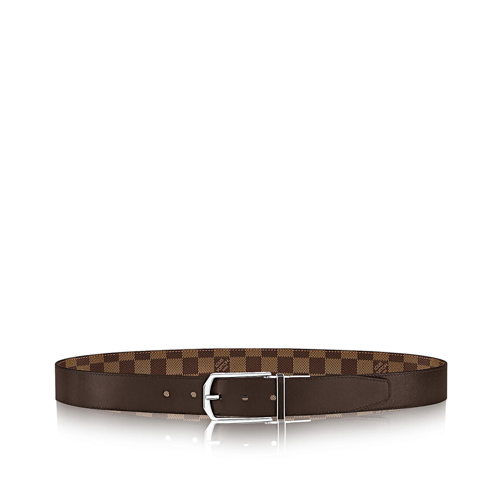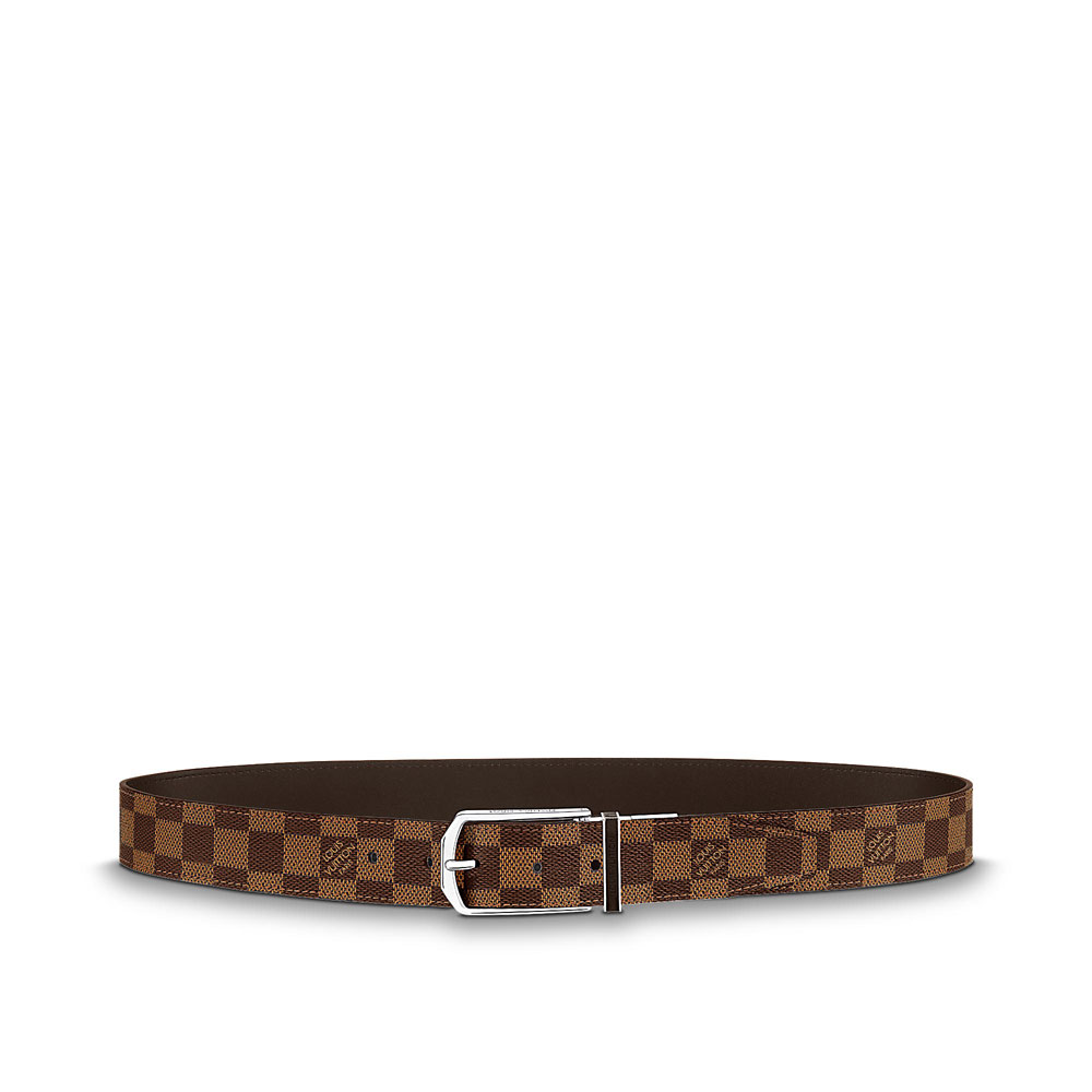 Sophisticated and easy-going: the Damier canvas side of this reversible Slender 35mm belt adds the final touch to urban looks, while the smooth calf leather side pairs perfectly with business attire thanks to its buckle in brass with shiny palladium finishing
