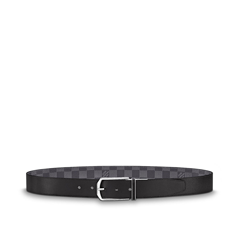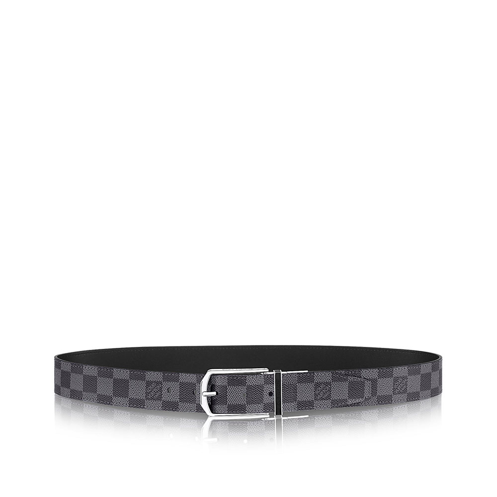 Sophisticated and easy-going: the Damier canvas side of this reversible Slender 35mm belt adds the final touch to urban looks, while the smooth calf leather side pairs perfectly with business attire thanks to its buckle in brass with shiny palladium finishing