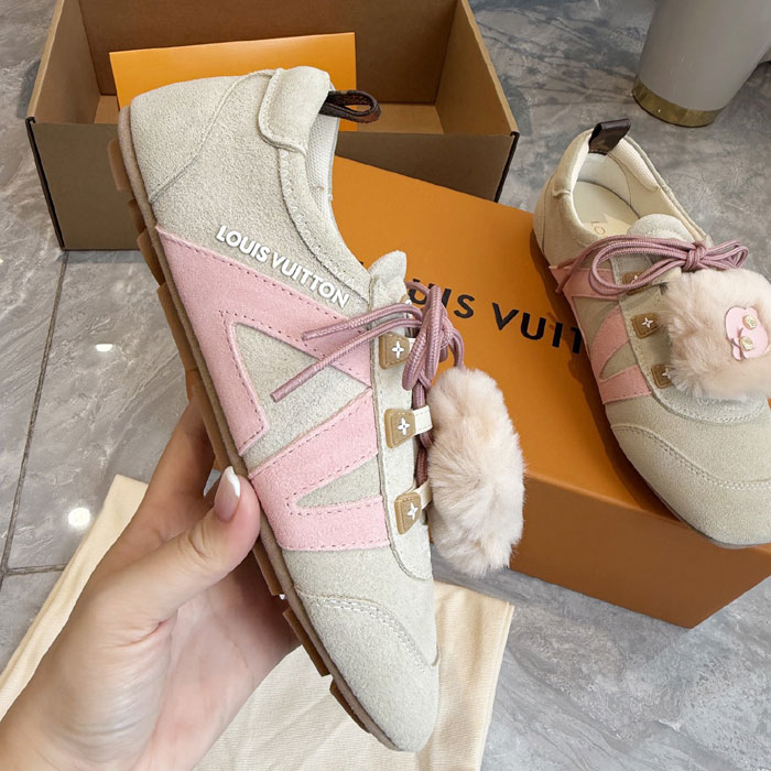 Introducing the luxurious LV Sneakerina, a perfect fusion of sneaker and ballet pump crafted from premium suede calf leather.