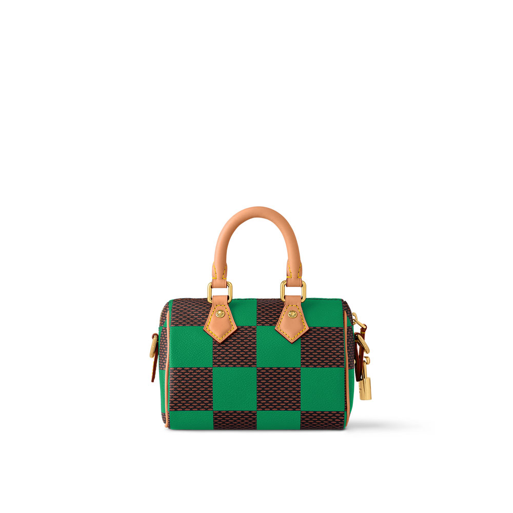 Inspired by the Speedy, a Louis Vuitton bag from the 1930s, the Speedy 18 Bandouliere is a miniature version made from Damier Pop coated canvas. By bringing a bright primary color to the Houses famed Damier checkerboard print, Creative Director Pharrell Williams has produced a canvas that perfectly matches the Speedys iconic lines.