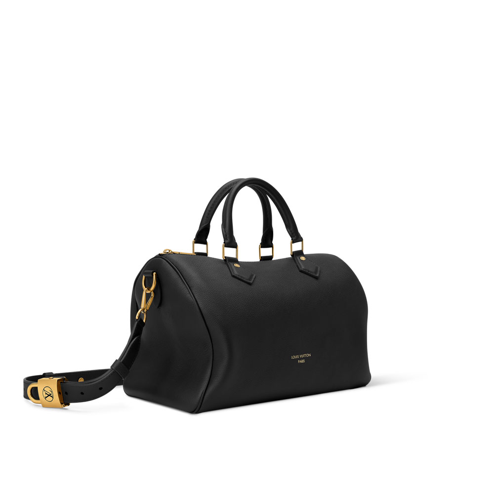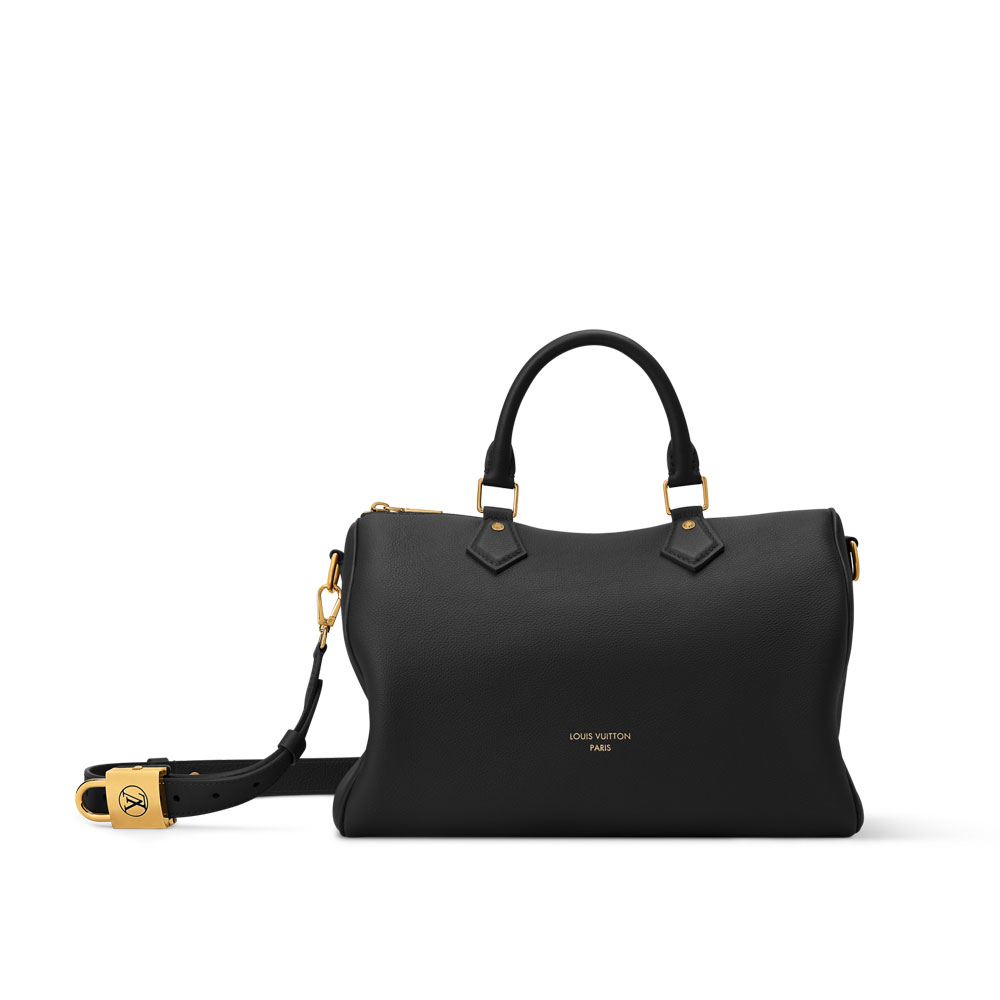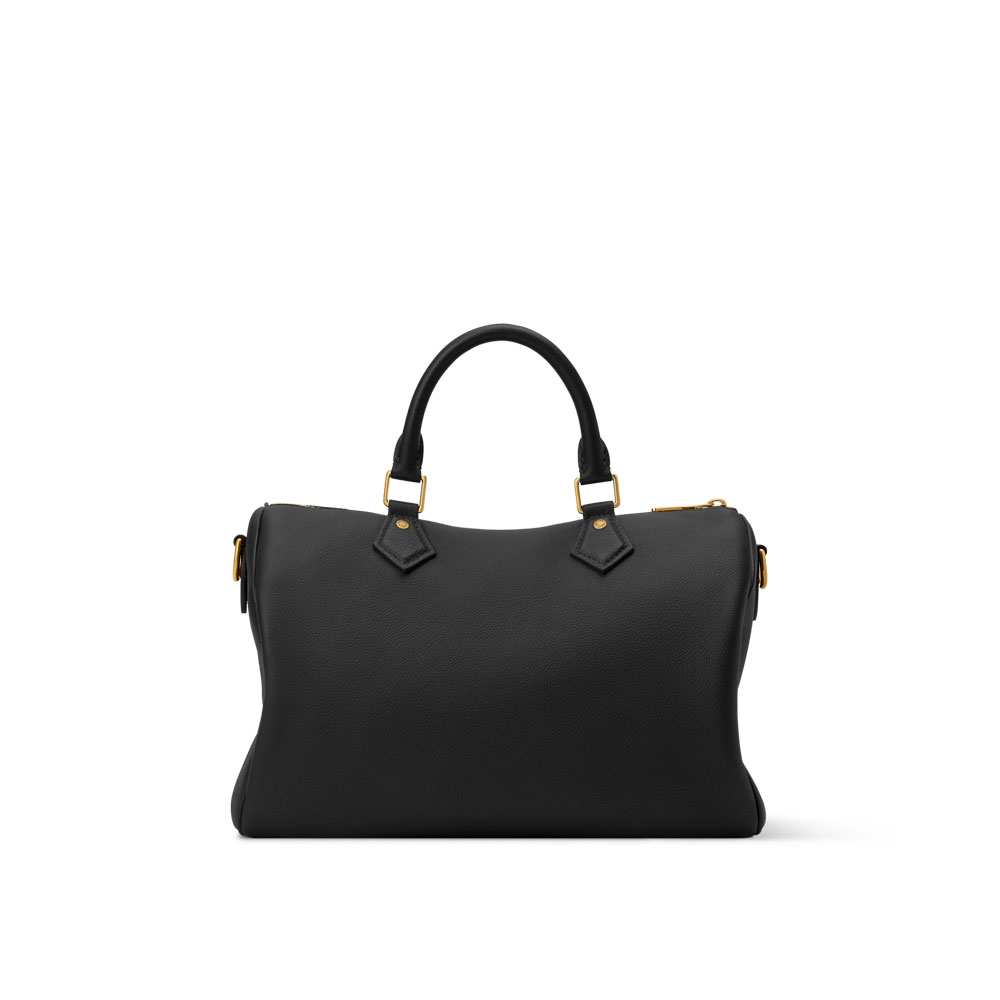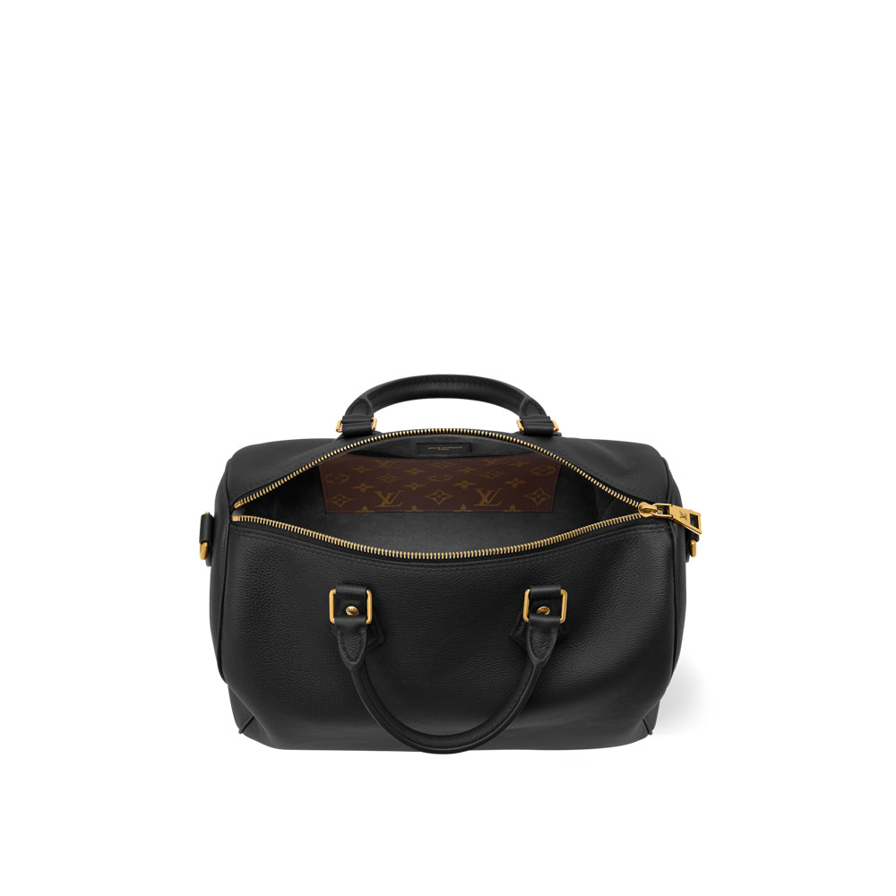 The Speedy Soft 30 handbag combines elegance with practicality. Made from premium grained calf leather with black suede lining, it features classic LV design elements.