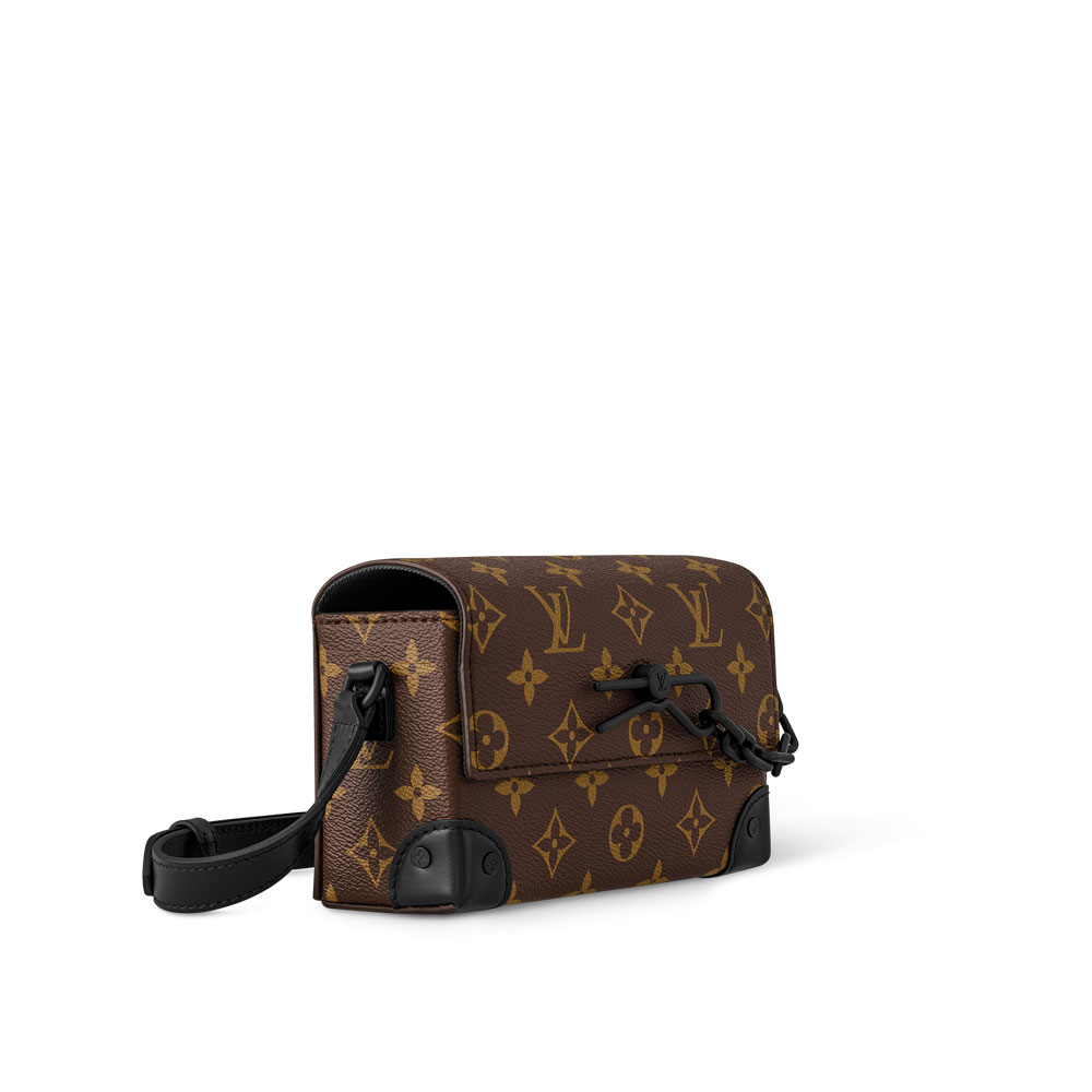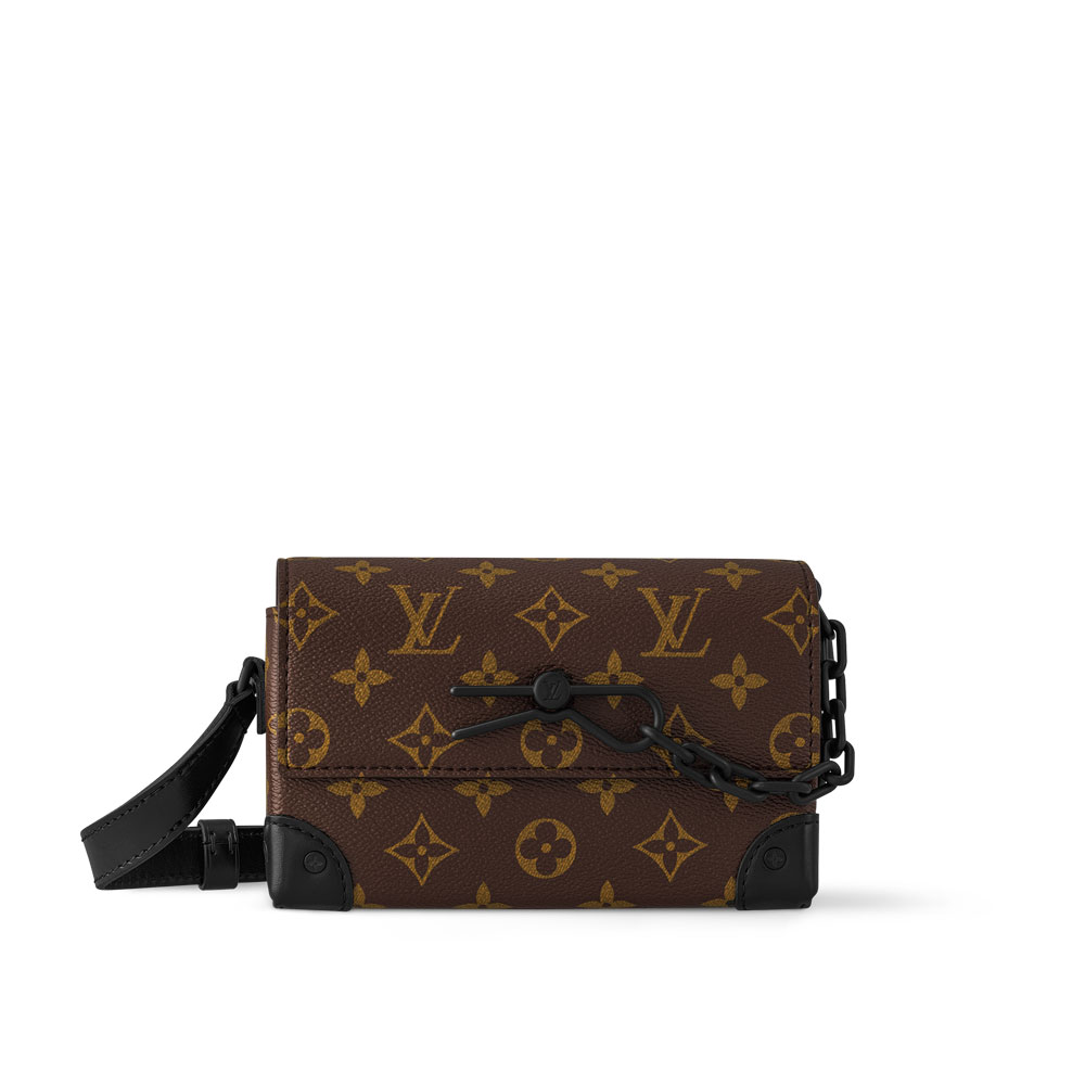 Instantly recognizable by its decorative chain-and-pin signature, the Steamer Wearable Wallet in Monogram Macassar canvas is ideal for smaller essentials. The magnetic closure gives easy access to whats inside while the shoulder strap adjusts for shoulder and cross-body wear. The reinforced corners evoke the Houses trunk-making origins.