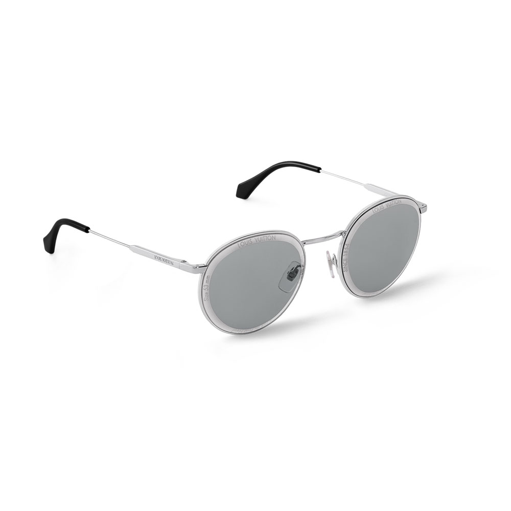 Round rims emulate camera lenses with LV markings, and include metal temples.