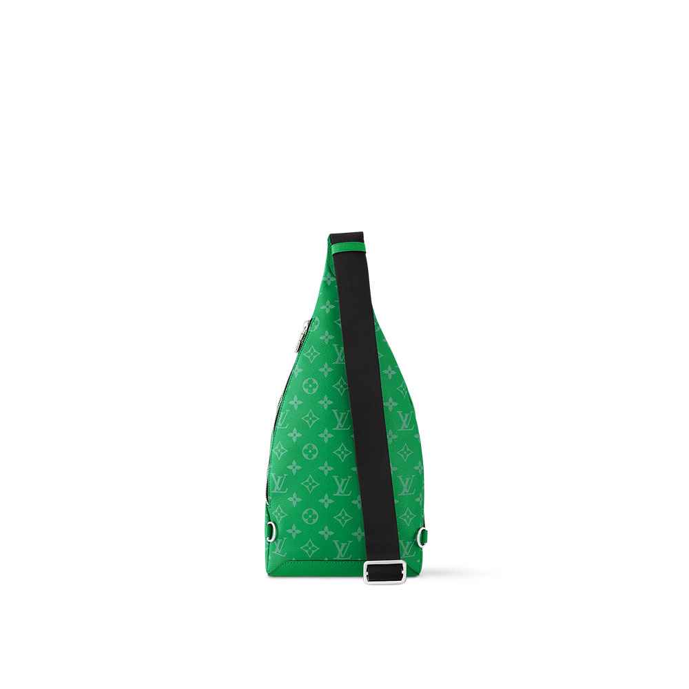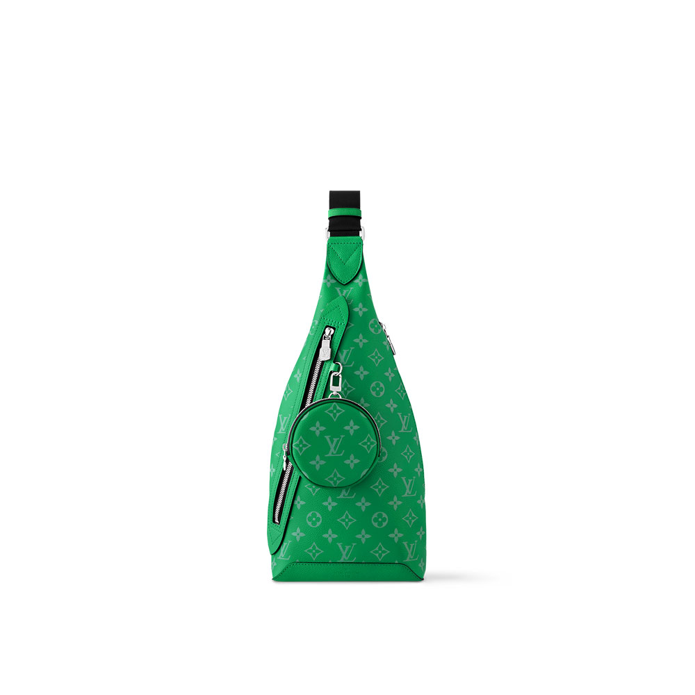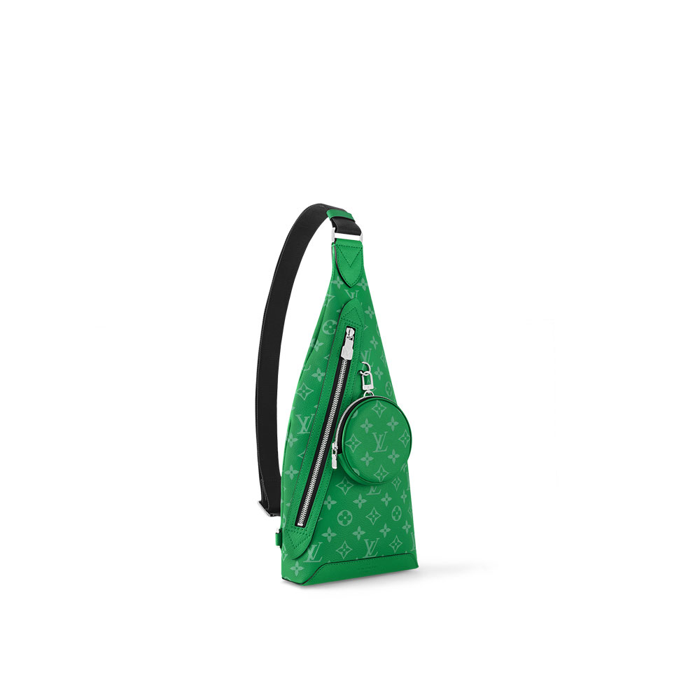 The Taigarama version of the sporty Duo Slingbag comes in an eye-popping new colour for 2024. Finely embossed Taiga leather is combined with the Houses historic Monogram canvas in a bold, playful shade of green. A cool and casual alternative to a backpack, it features a removable pouch, ideal for keys, coins and other small personal items.