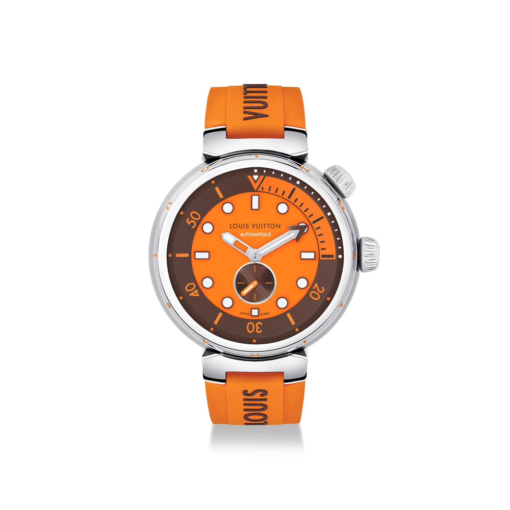 Casual and sporty, it combines traditional dive watch functions with the colorful, creative and unconventional style unique to Louis Vuitton.