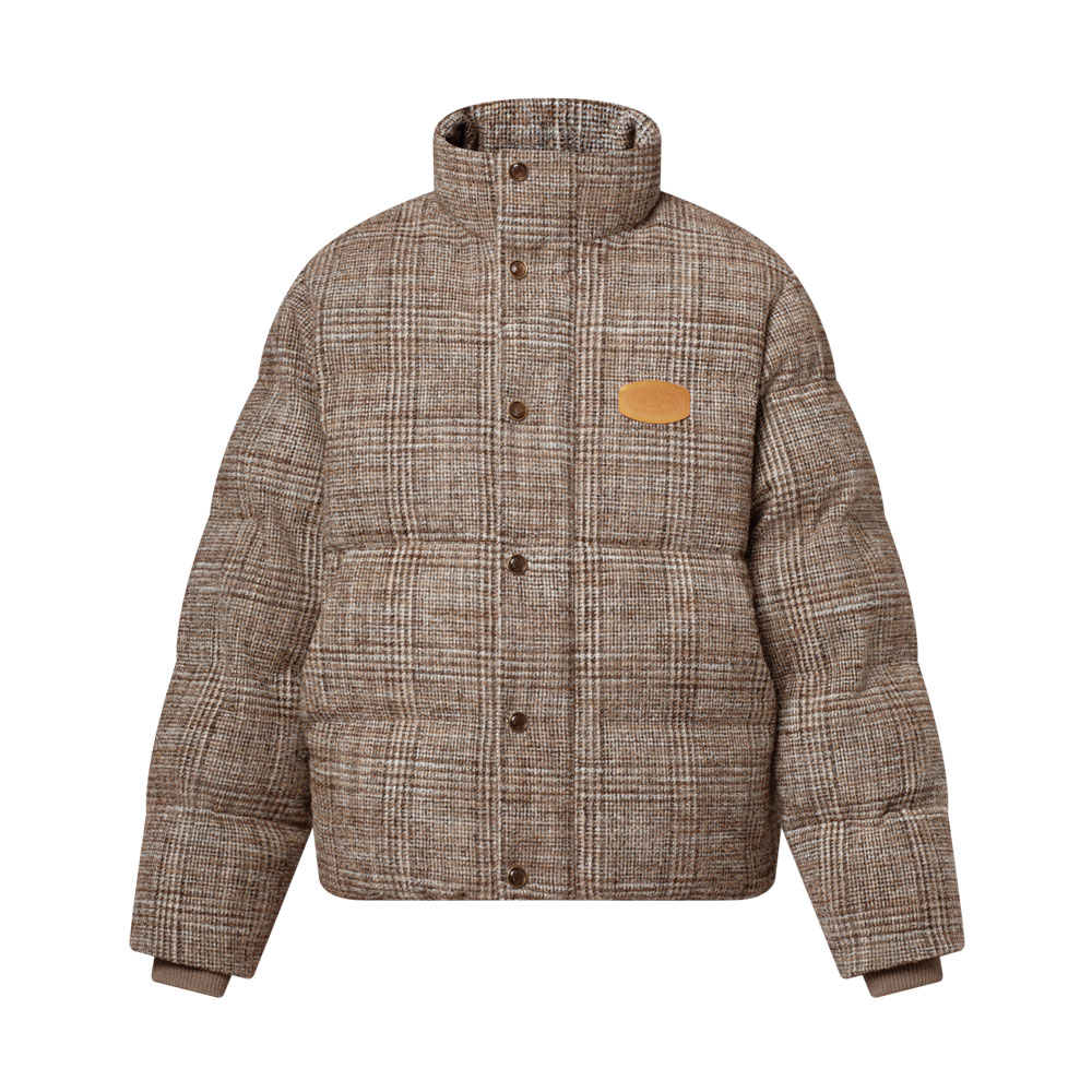 Louis Vuitton Tweed Down Blouson A stylish update to the classic puffer jacket, crafted from premium glen plaid tweed echoing British heritage. Designed for winter comfort, featuring a stand collar, ribbed cuffs, and ultra-light Ecodown insulation for superior warmth.