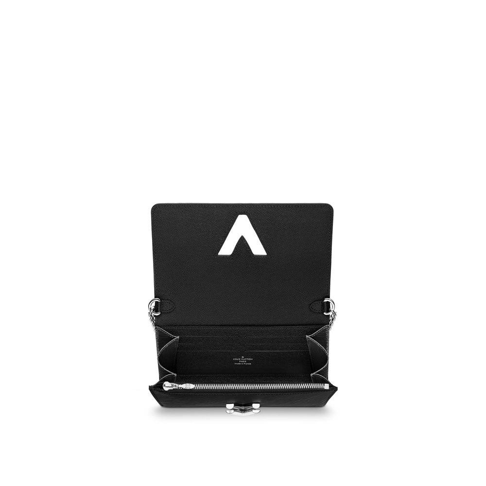 The emblematic Twist Chain wallet in Epi leather is a stylish and versatile design which can be carried as a clutch or over the shoulder on its long chain. It features the playful Twist turn-lock with an L that transforms into a V with a twist of the fingers.