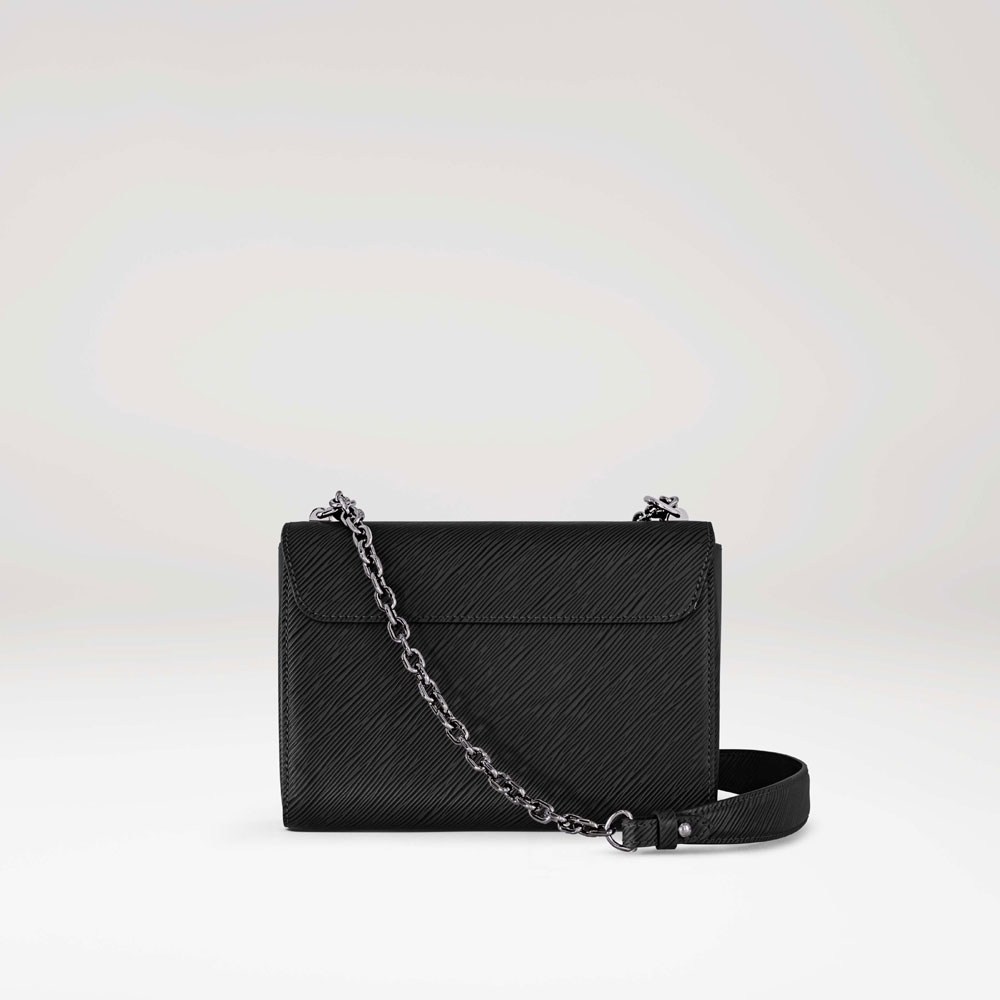 Crafted from the House's emblematic Epi leather. this Twist MM chain bag features the now-iconic LV Twist lock. a sculptural signature offered in a luminous ruthenium-color hardware.Unexpectedly roomy thanks to the cleverly designed wave base. this beautifully made bag is a fashionable day-to-evening companion. The sliding chain strap can be doubled for shoulder carry or lengthened for cross-body wear. A New Classic of the House. the Twist bag was introduced at the 2015 Cruise show.