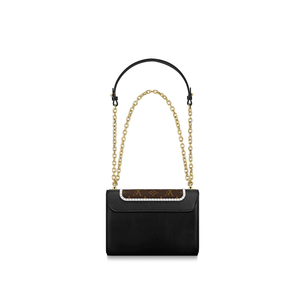 this Twist MM handbag features a flap made from the iconic canvas. Framed with trompe-l'oeil braid. The golden LV Twist lock and sliding chain enhance the bag's neutral palette. For a beautifully crafted. Signature piece that makes a fashionable addition to any wardrobe.