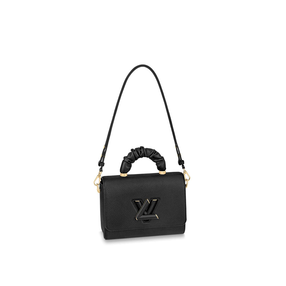The Twist MM handbag is fashioned from Taurillon leather with a smooth calfskin scrunchie handle. Beyond style. the sheathed top handle delivers comfortable carry. The monochromatic treatment of the LV Twist lock adds a graphic touch. A detachable shoulder strap enables shoulder and cross-body carry.
