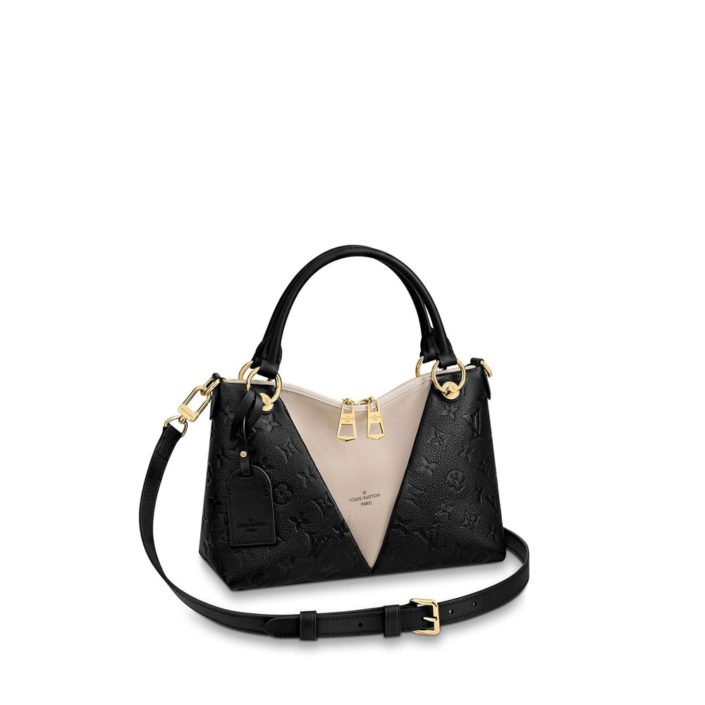 For Spring 2019 the V Tote is offered in embossed Monogram Empreinte cowhide leather with a smooth cowhide leather panel and trim. The charming BB model lends itself to several carry styles. with its twin Toron top handles and long. removable strap. Gold-color hardware adds a bright note and the luggage-style name tag nods to the House's travel heritage.