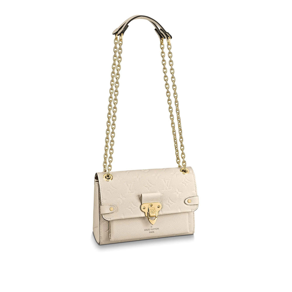 The new Vavin BB brings a contemporary twist to a classic bag. Its sophisticated mix of smooth and embossed Monogram Empreinte leather contrasts with the gold finish of the comfortable chain strap and the clasp modeled after Louis Vuitton's historic trunk locks. Compact yet large enough to hold all the essentials. it makes a superb day-to-evening companion.