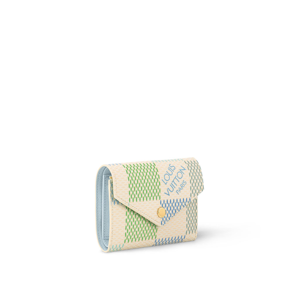 For the Damierlicious special edition, the Victorine wallet comes in Damier canvas, which is revisited in luscious pastel shades. It brings a fresh, feminine touch to this tiny wallet, whose envelope-style flap is secured with an engraved, gold-tone press-stud. Inside, there are pockets for bills and coins, and six card slots.