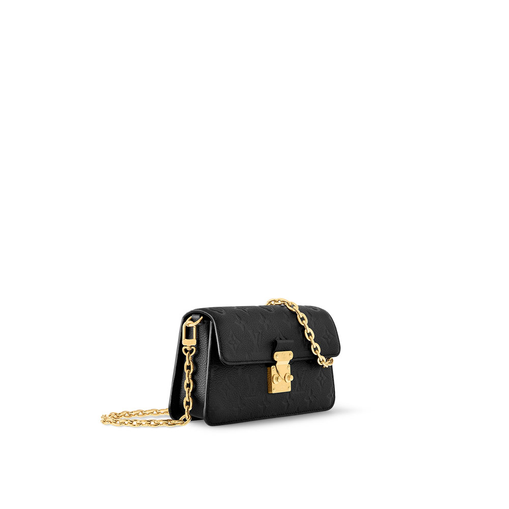 The Metis wallet on chain is crafted from grained Monogram Empreinte leather, which is embossed with Louis Vuitton's signature Monogram pattern. This stylish bag has a trapezoidal shape and a front flap which is secured with an S-lock clasp, referencing the House's historic trunks. It features a removable chain for cross-body wear. Size:19 x 11 x 5.5CM