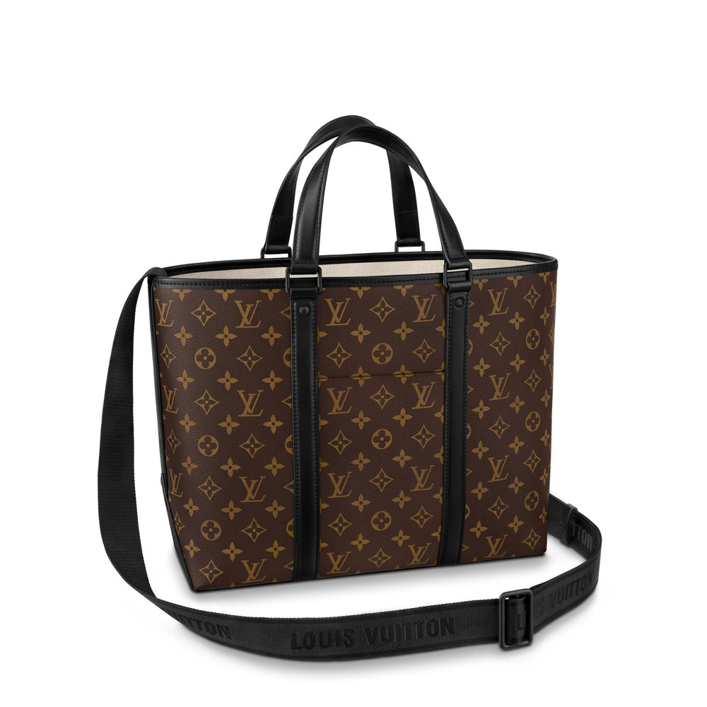 The Week-End Tote in Monogram Macassar canvas is inspired by Louis Vuitton's historic Week-End bag. Perfect for a day in the city or a weekend getaway. it offers a high-capacity main compartment plus a handy outside phone pocket. And it's easy to carry with its adjustable strap and flat handles that fit comfortably on the shoulder.