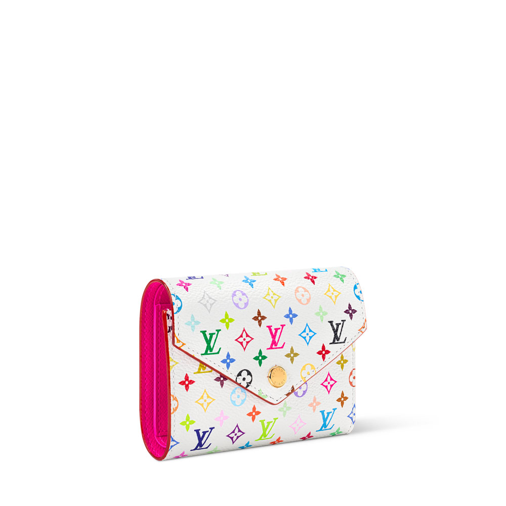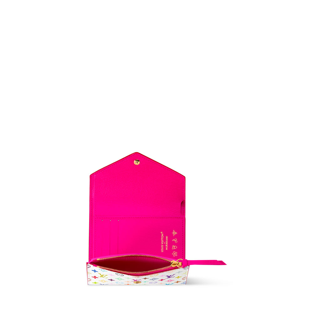 A stylish women's wallet featuring Louis Vuitton's signature Monogram print, reimagined for the special Murakami collaboration. This compact design combines durable canvas with soft cowhide lining.