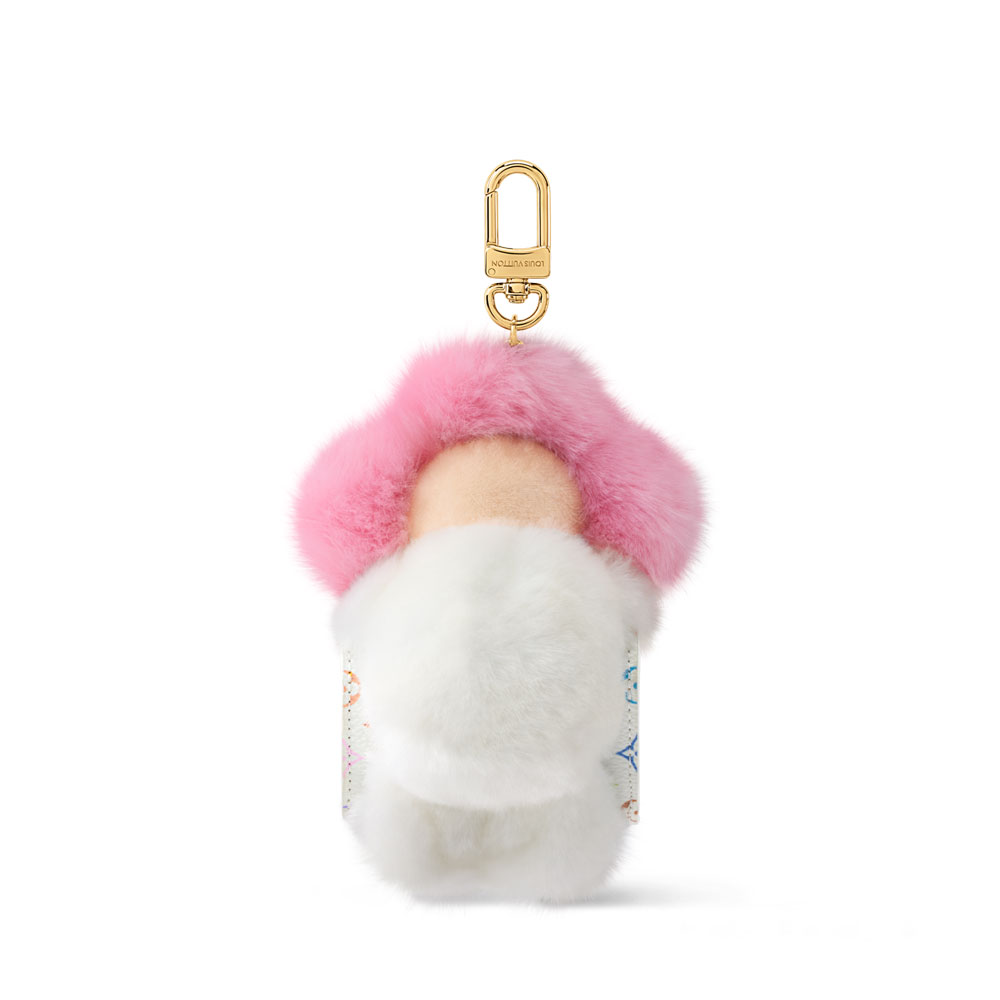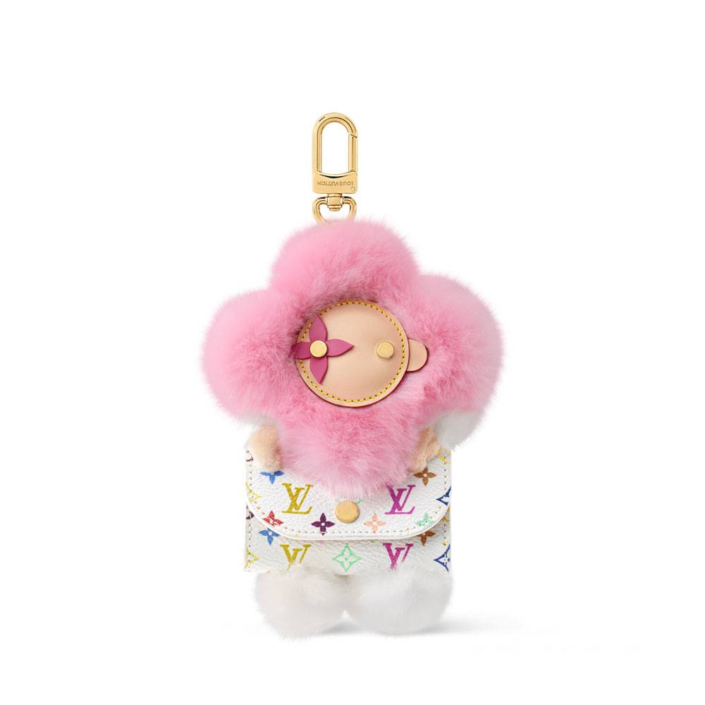 LV x TM Vivienne Cuddle Bag Charm S00 Transform your bag with Louis Vuittons playful Vivienne charm. Featuring Takashi Murakamis iconic Monogram Multicolor print, this accessory blends style with function. Vivienne mascot with faux fur collar Multicolor canvas & leather Gold-tone hardware Doubles as an earbud pouch