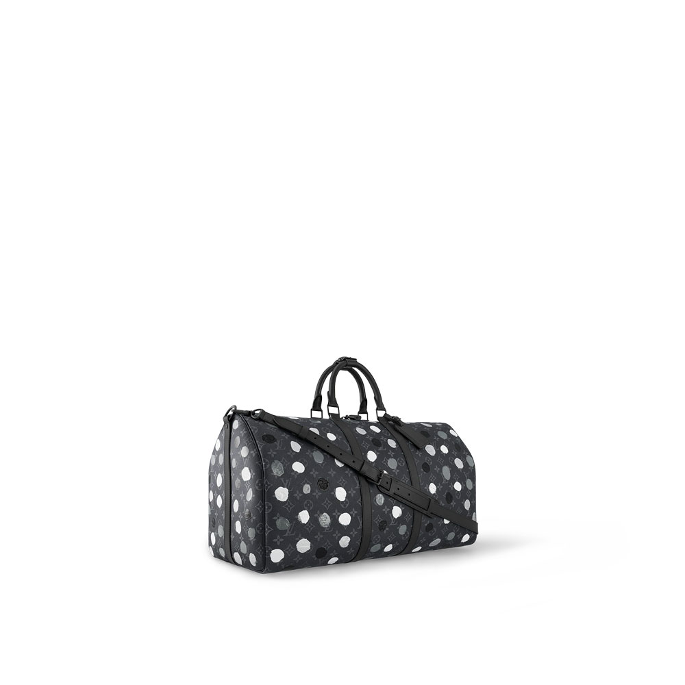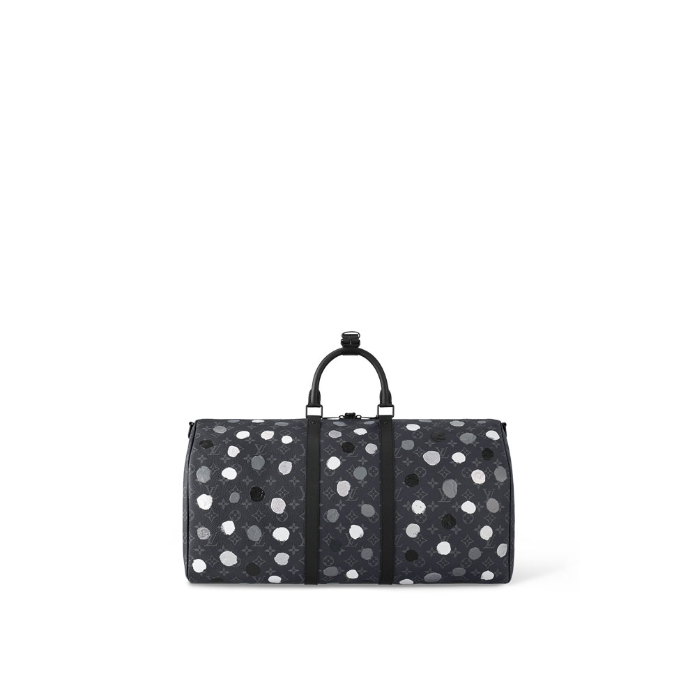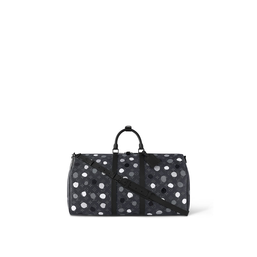 The LVxYK Keepall 55 joins the exceptional new Louis Vuitton x Yayoi Kusama collection. a celebration of art and high-level craftsmanship. Even as a child. the eminent Japanese artist was fascinated by dots. seeing them as an expression of uncertainty. A recurring element in her work. dots adorn this version of the LVxYK Keepall in gray tones on Monogram Eclipse canvas. turning an elegant and practical bag into a creative collector's item.