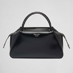A study of the lines characterizes this brushed leather handbag presented during the FW22 fashion show. It stands out for its absolutely elegant silhouette emphasized by the finish applied by hand with an airbrush effect that underlines the geometric lines and the three-dimensionality of the bag. The enameled metal triangle logo decorates the accessory. Size:W31 x H16 x D13cm