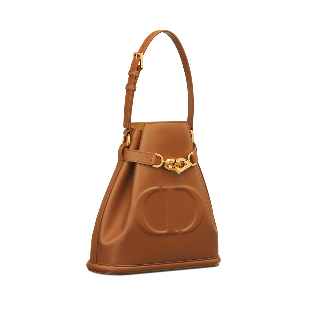 The C'est Dior bag embodies classic sophistication through refined design. Crafted from golden saddle leather, its iconic front features an embossed CD emblem, highlighting artisanal craftsmanship. Equipped with a twisted letter D clasp, this medium-sized bucket bag securely stores essentials. A detachable chain strap with leather padding offers versatile carrying - grip the ergonomic top handle or wear it across the shoulder. Key features include: -Adjustable shoulder strap with protective leather layer -Removable chain accessory for style variation -Security-focused clasp mechanism -Luxurious calfskin exterior with supple lining