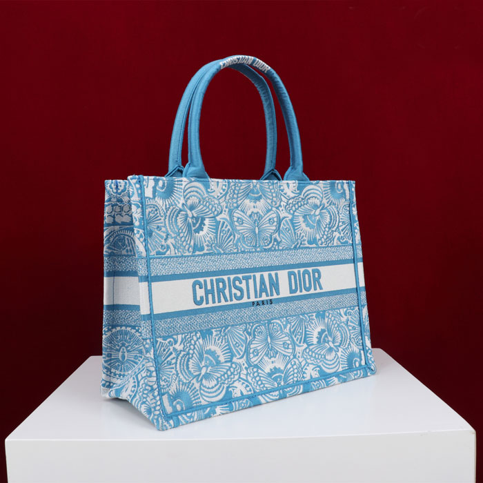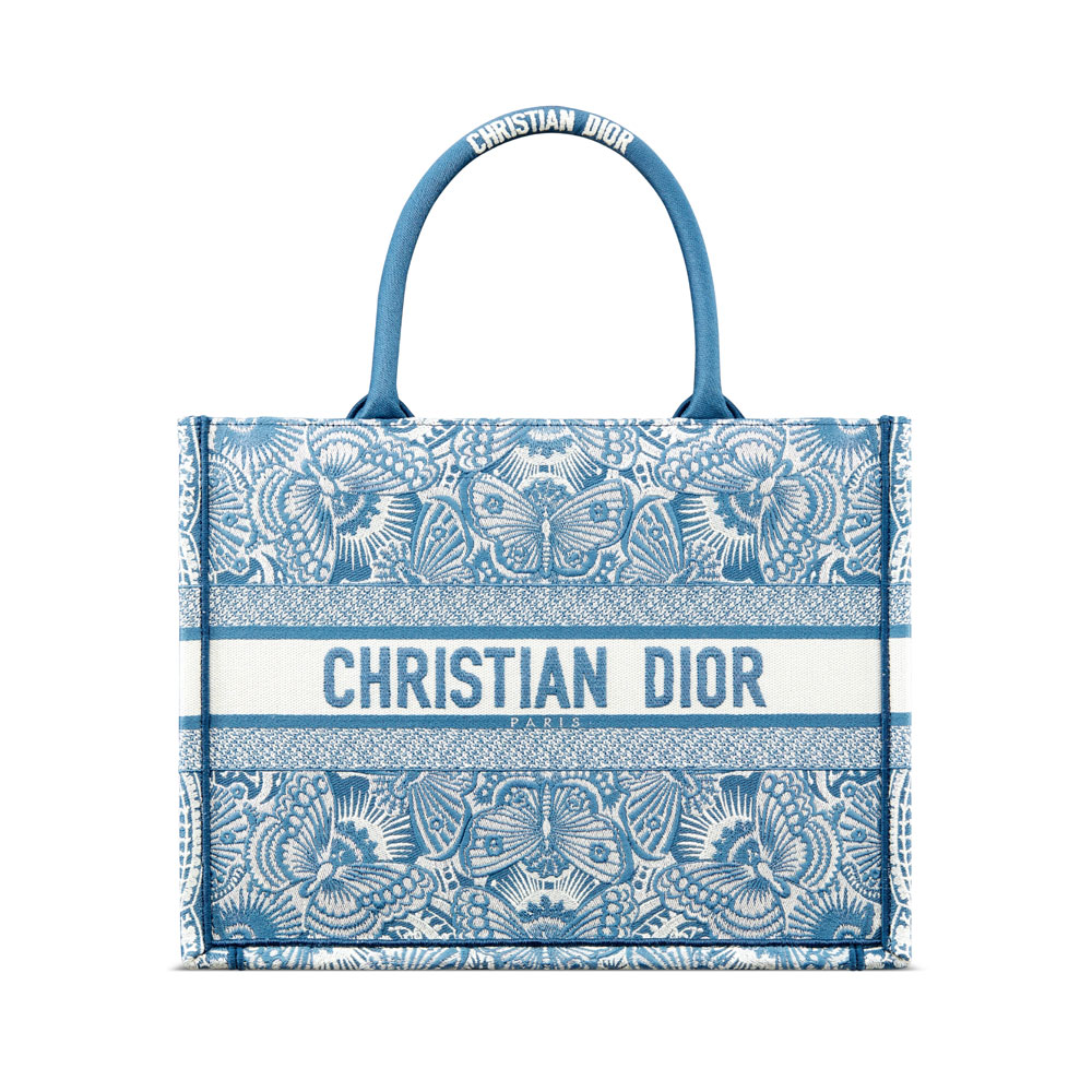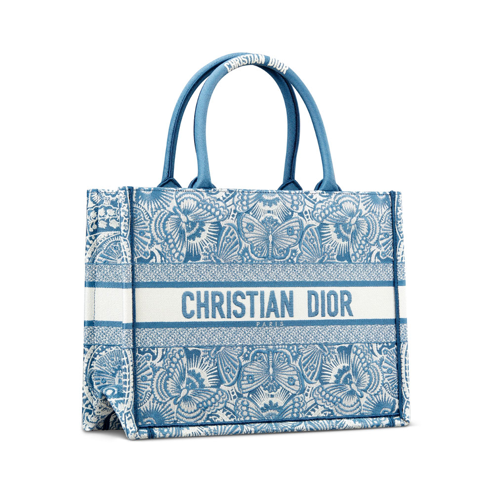 Introduced by Maria Grazia Chiuri, Dior's Creative Director, the Book Tote embodies the brand's iconic style. Crafted for organizing essentials, this piece features a striking D-Butterfly Paisley motif in navy and white embroidery, reimagining the butterfly motif with contemporary flair. The front bears the Christian Dior Paris signature, while its versatile design allows both hand-carrying and shoulder wear. Exemplifying the maison's craftsmanship, the tote combines artistic elegance with practical functionality.