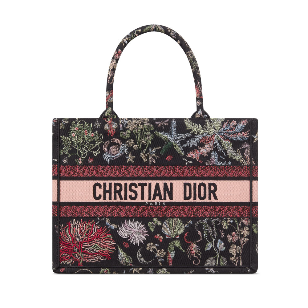 Introduced by Maria Grazia Chiuri, Dior's Creative Director, the Book Tote emerges as a signature piece in Dior's design language. This medium-sized bag combines functionality with artistry through Pietro Ruffo's vibrant embroidery of the Cabinet de Curiosites motif