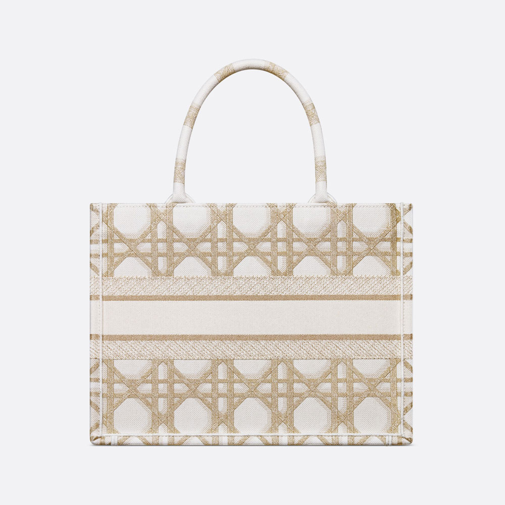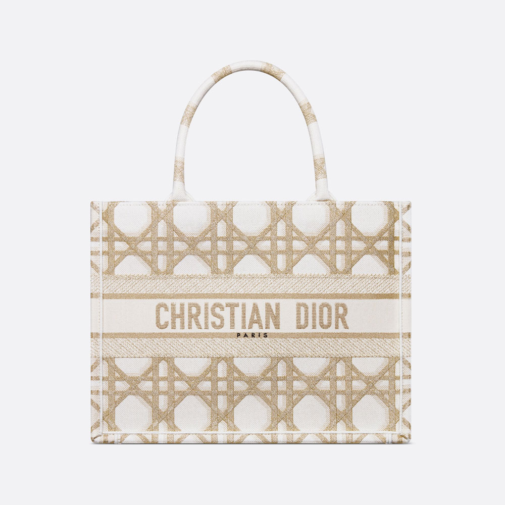 Introduced by Maria Grazia Chiuri, Creative Director of Christian Dior, the Dior Book Tote has become a staple of the Dior aesthetic. Designed to hold all the daily essentials, the style is fully embroidered with a gold-tone Macrocannage motif and is further adorned with the Christian Dior Paris signature on the front. The medium tote exemplifies the House's signature savoir-faire and may be carried by hand or worn over the shoulder.