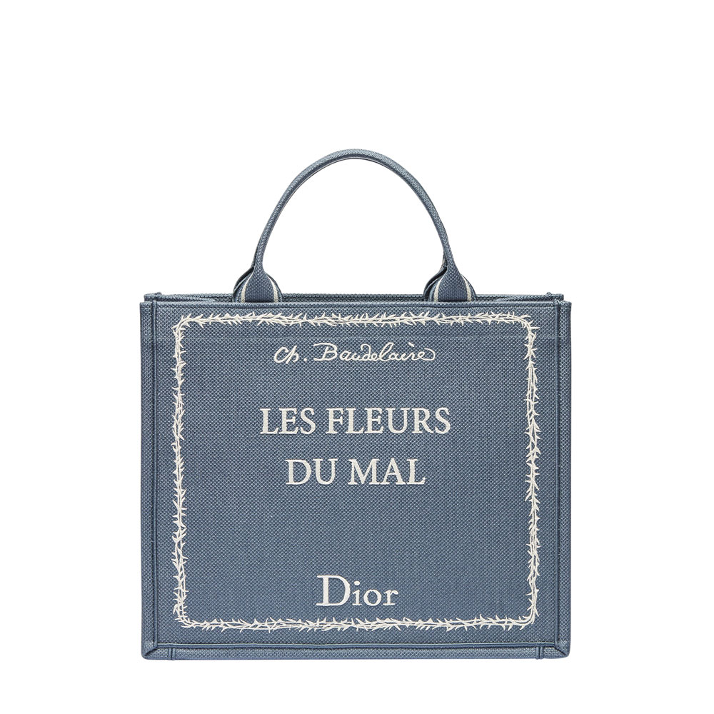 Inspired by Baudelaire's literary classic, this iconic Dior tote features elegant embroidery referencing Les Fleurs du Mal. The medium size offers versatile carrying options.