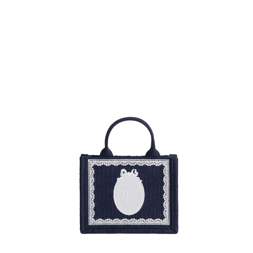 Mini Dior Book Tote - Blue Dior Oblique & White Lace