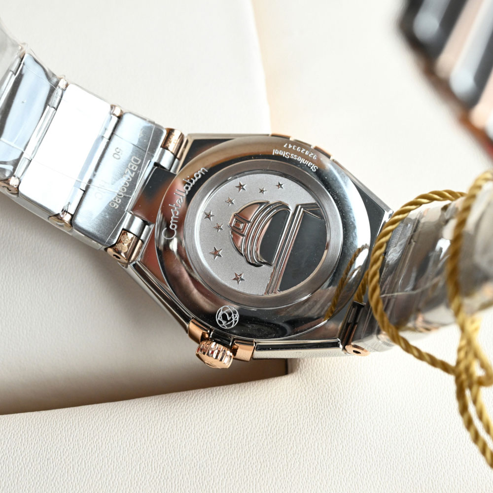 The elegant Omega Constellation 131.25.25.60.60.002 watch is a perfect accessory for sophisticated women's fashion. This quartz-powered timepiece, featuring a stunning blend of stainless steel and 18K rose gold, pairs beautifully with both formal and semi-formal outfits.