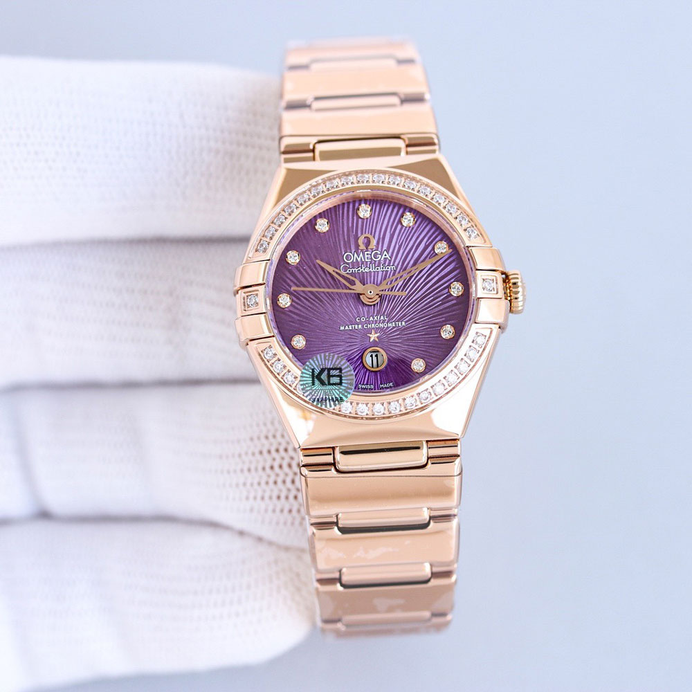 The Omega Constellation 131.55.29.20.60.001 is a luxurious timepiece crafted for women, featuring an elegant 29mm 18K rose gold case and automatic mechanical movement. Its refined design makes it perfect for sophisticated occasions.