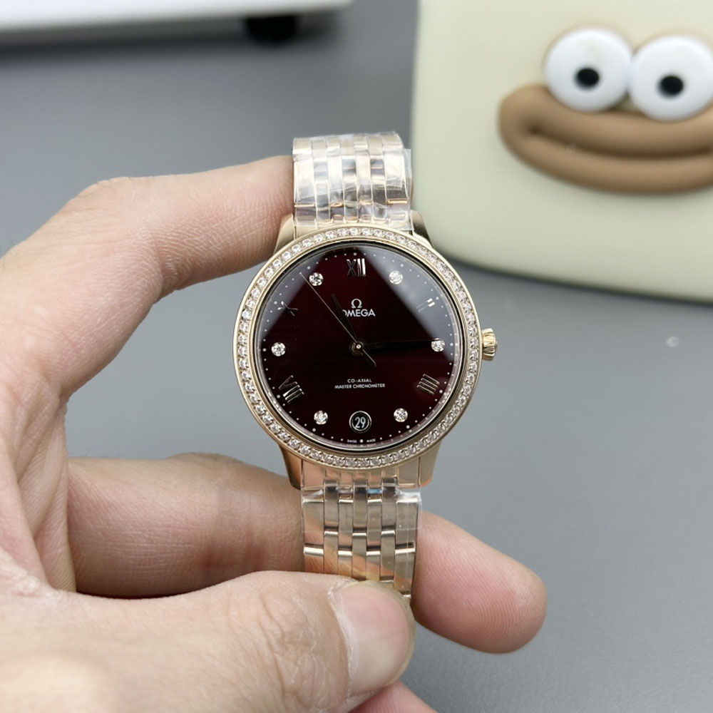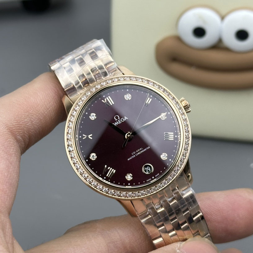 The elegant Omega De Ville 434.55.34.20.61.001 watch makes a perfect accessory for sophisticated women's fashion. With its 34mm 18K gold case and automatic mechanical movement, this timepiece complements both professional and evening attire beautifully.