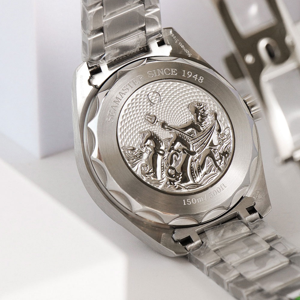This sophisticated 43mm stainless steel Omega Seamaster automatic watch pairs perfectly with both formal and smart-casual attire. For business occasions, wear it with a navy blue suit and crisp white dress shirt - echoing James Bond Omega Casino Royale Watch elegance.