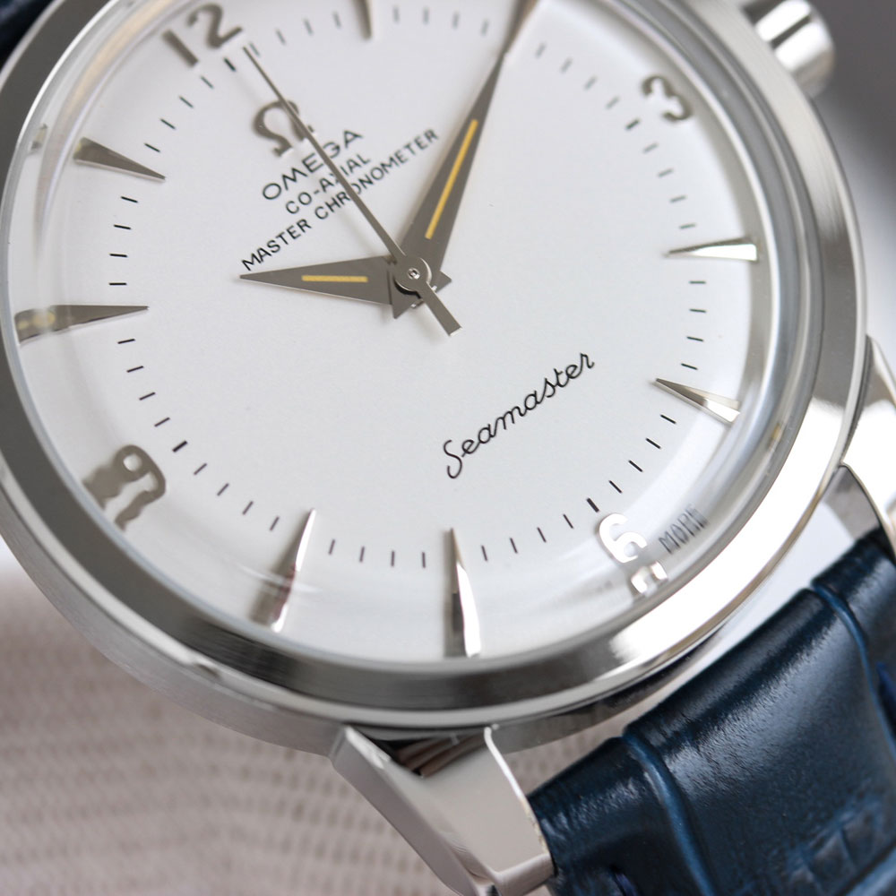 This Omega Seamaster complements a charcoal-gray or midnight-blue tailored suit. Its sleek automatic mechanical movement (Caliber 8806) ensures it stands out subtly at business meetings or evening events.