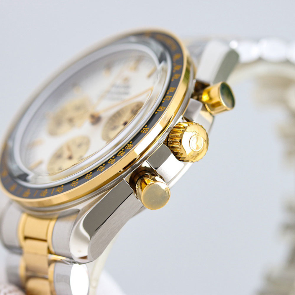 The Omega Speedmaster 310.20.42.50.02.001 Watch is a luxurious yet versatile timepiece, perfect for elevating any gentleman's wardrobe. With its 42mm stainless steel and Moonshine 18K gold case, this automatic mechanical watch pairs exceptionally well with both formal and smart-casual attire.