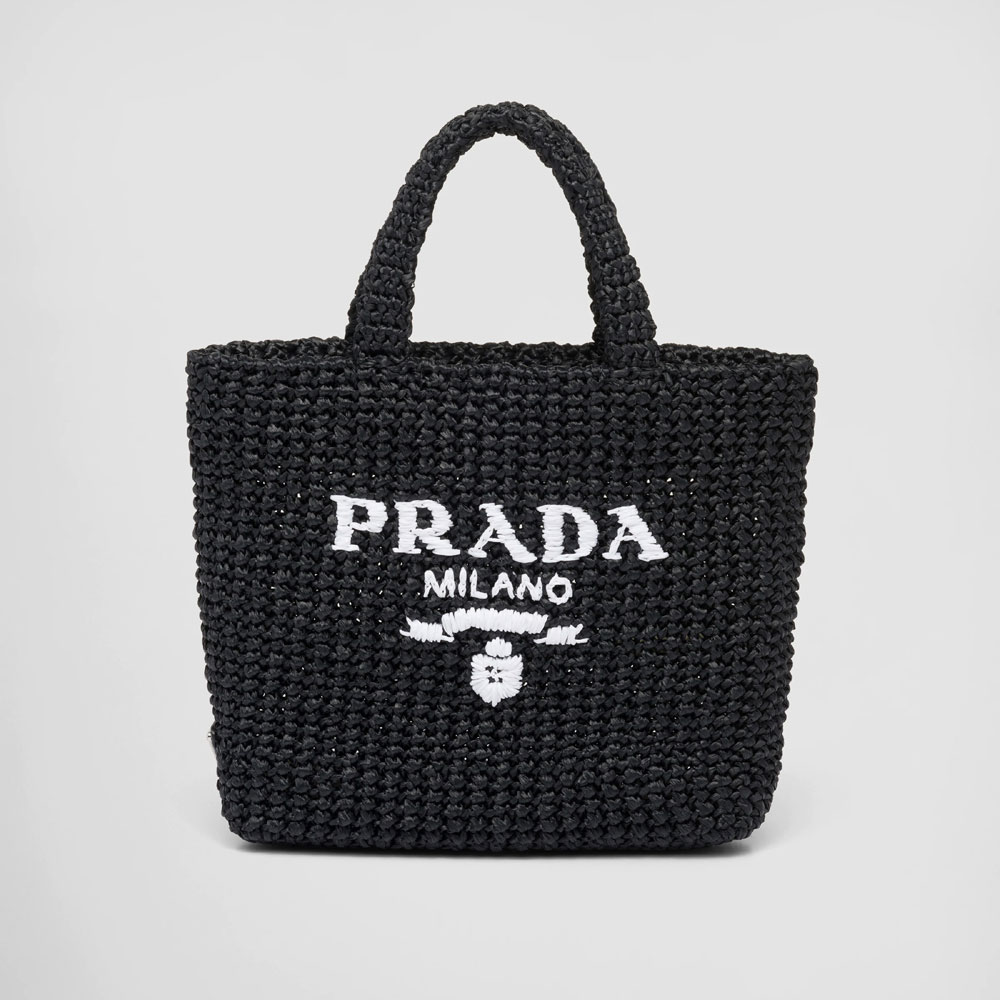 Prada Black Small raffia tote bag 1BG422 2A2T F0002