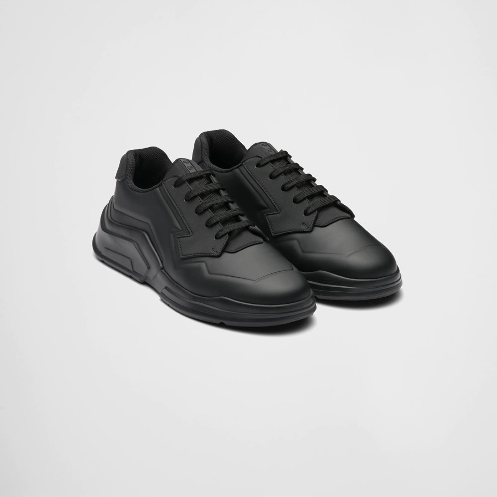 These Prada Polarius sneakers with a futurist design are characterized by a three-dimensional injected rubber overlay on the upper. Made of fabric with heat-sealed tape seams. the footwear stands out for its sporty allure and typical techwear details.