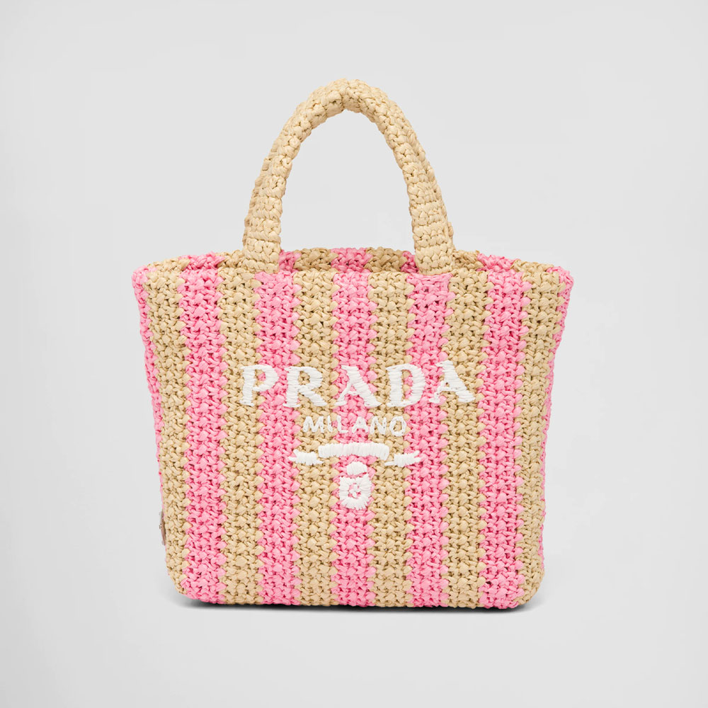 Prada Tan petal Pink Small raffia tote bag 1BG422 2A2T F0NJX