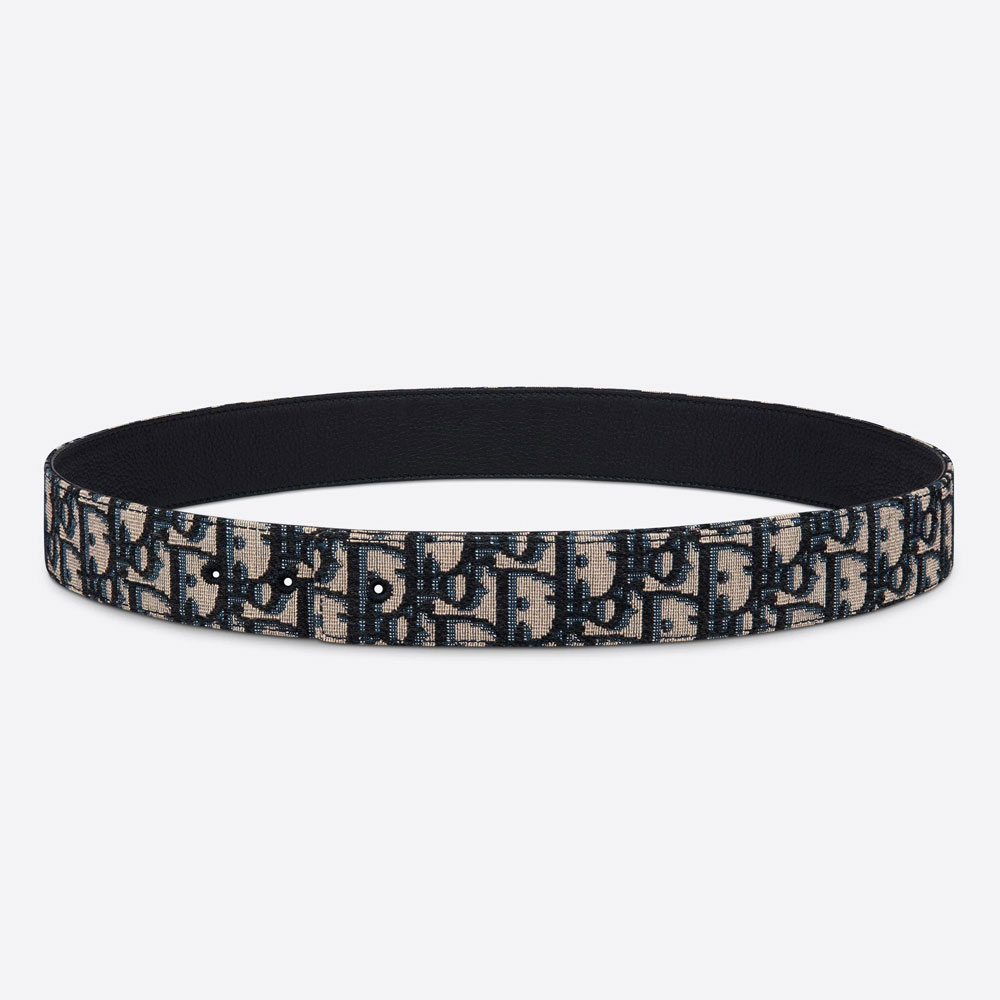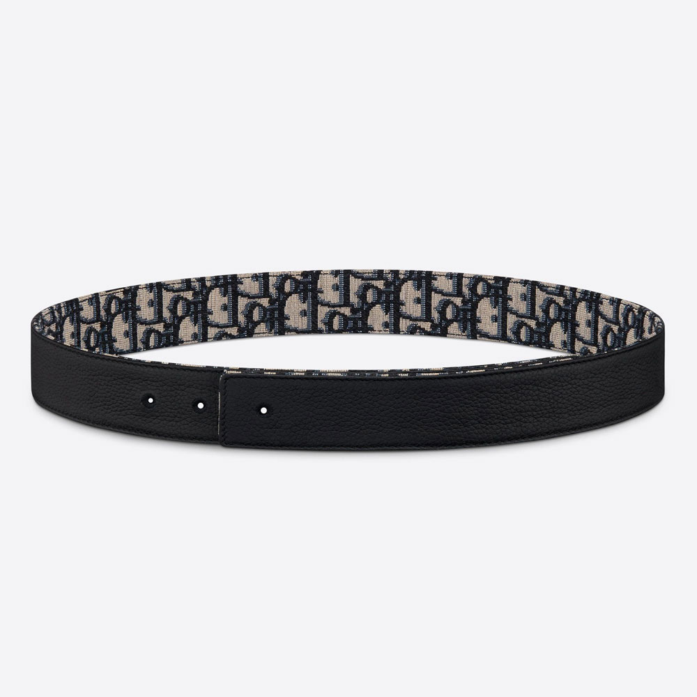 The 35 mm reversible belt epitomizes elegance and modernity. The reversible design features beige and black Dior Oblique jacquard on one side, and the other in black grained calfskin. The belt strap can be completed with any of the 35 mm buckles to make it a made-to-measure accessory for any and every outfit.
