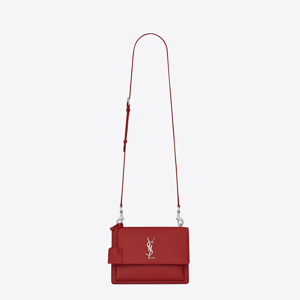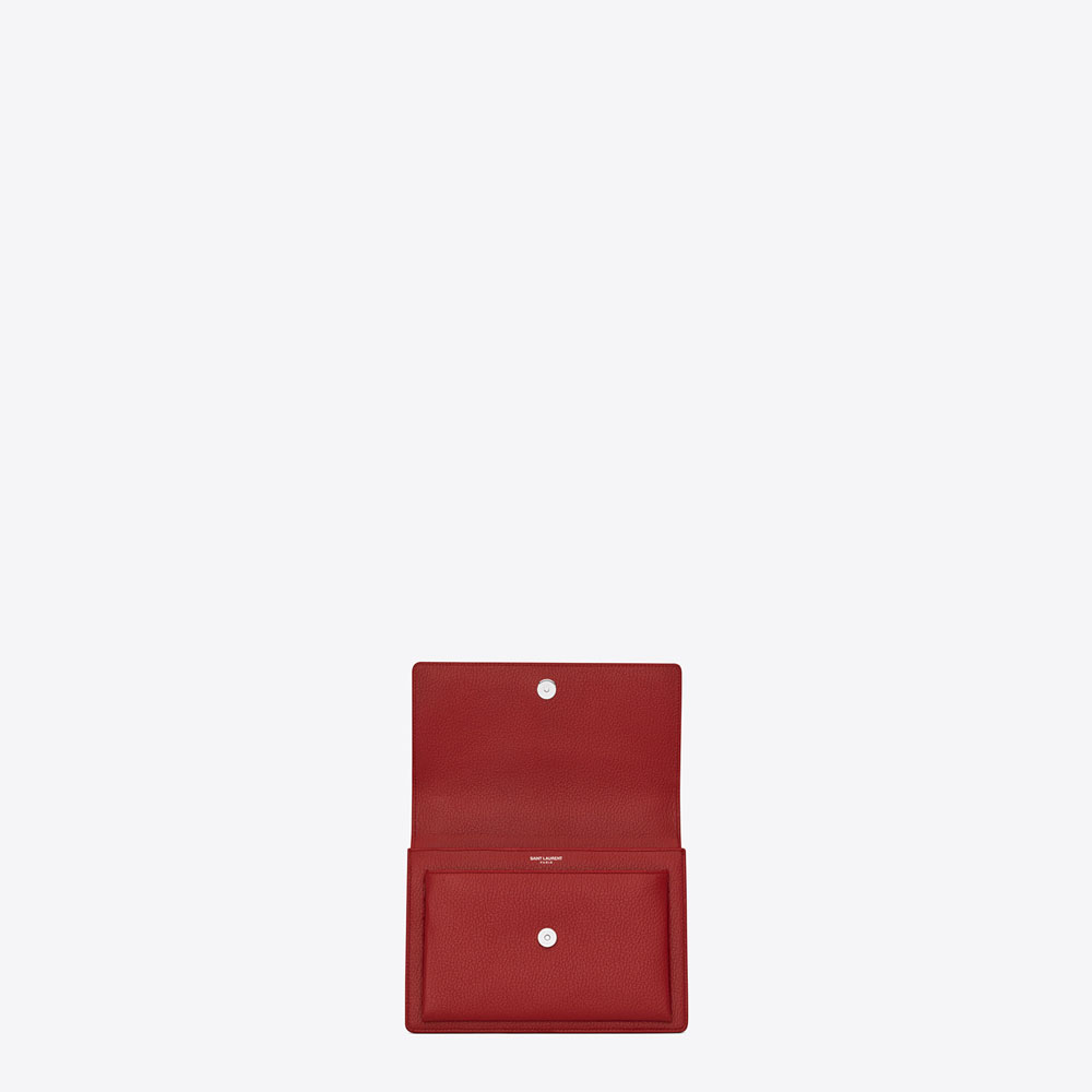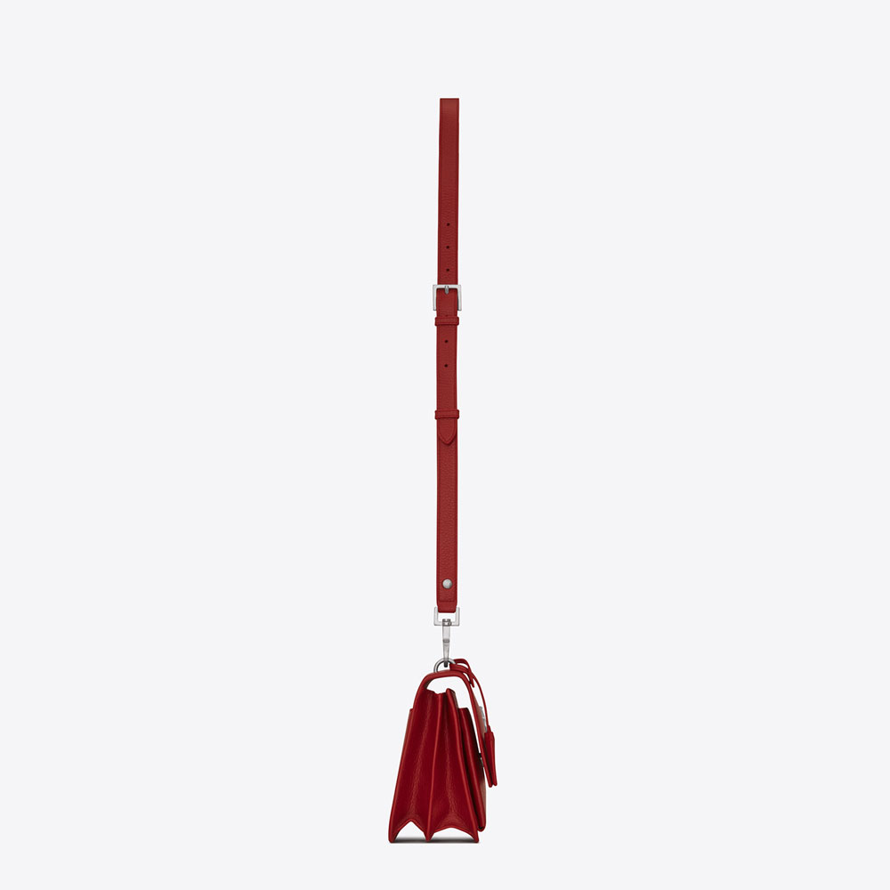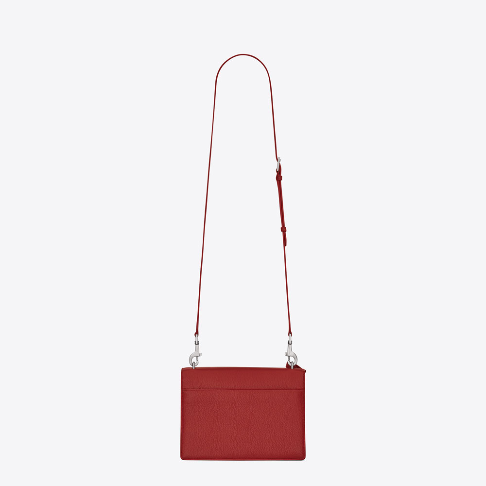 SAINT LAURENT flap front bag with accordion sides, removable and adjustable leather shoulder strap, leather encased key ring and metal interlocking YSL signature.
