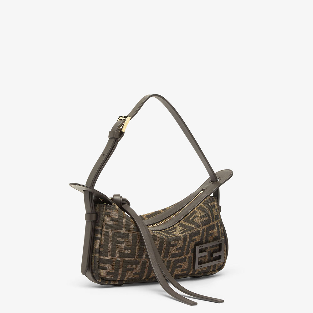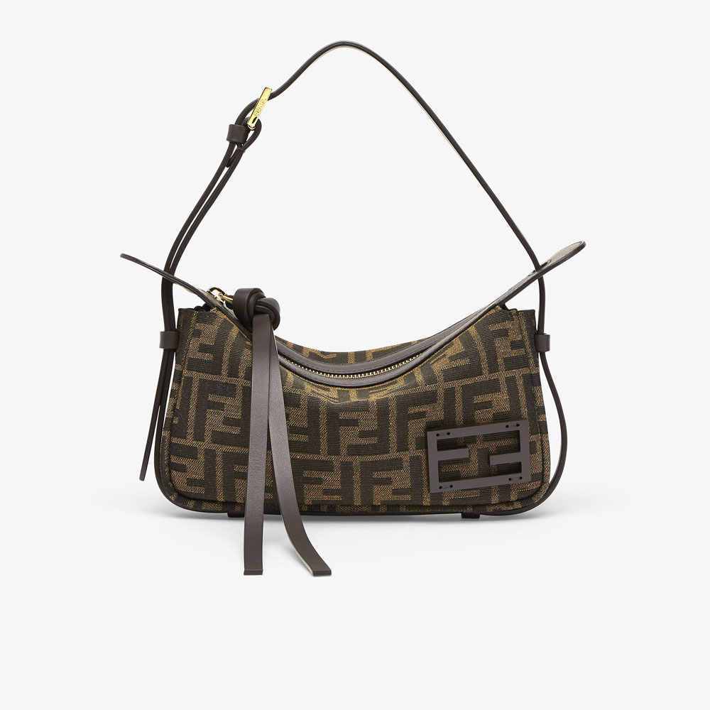 Small Simply Fendi bag, a soft shoulder bag presented at the Fall-Winter 2024/25 fashion show, named after its elegant and essential design inspired by a 1990s archive style.Made of jacquard fabric with iconic brown FF motif.